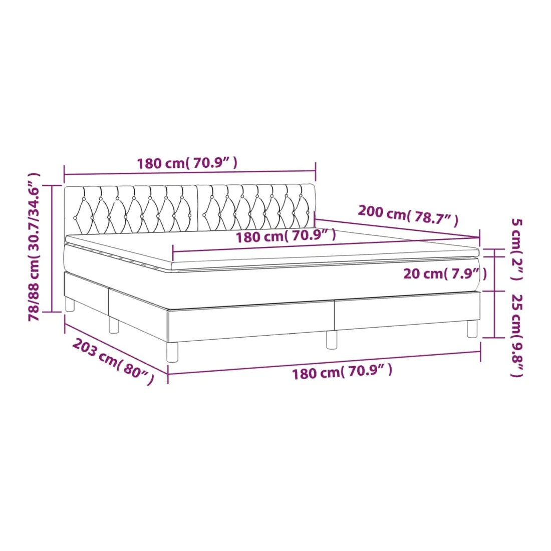 • Dimensions : 180 x 200 x 20 cm (l x L x H)