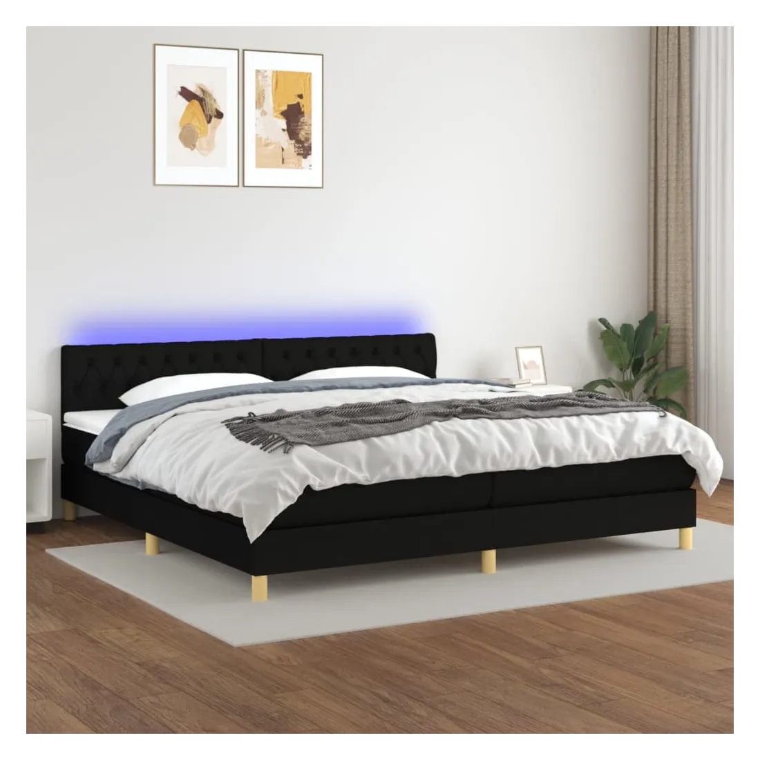 Utilisez ce sommier tapissier avec matelas et LED pour profiter d'un sommeil réparateur ! C'est le point central de votre chambre à coucher. Tissu durable : le tissu présente un aspect simple et épuré, et il est respirant et durable.Tête de lit pratique : la tête de lit est réglable en hauteur selon vos préférences. La tête de lit vous offre un excellent soutien du dos lorsque vous êtes assis dans votre lit pour lire ou regarder la télévision.Bande LED colorée : apportez de l'éclairage dans l'obscurité avec des lumières LED colorées !Matelas à ressorts ensachés : le ressort ensaché individuel intégré est connu pour sa très haute qualité tout en assurant un haut niveau de durabilité et d'adaptabilité. Il peut absorber efficacement le bruit et les chocs causés par les sauts et les rotations.Protège-matelas doux pour la peau : le protège-matelas est recouvert d'un tissu résistant et doux pour la peau, ce qui le rend souple et confortable. Remarque :Pour des raisons d'hygiène, le matelas ne peut pas être retourné si l'emballage est retiré ou ouvert.Chaque produit est livré avec un manuel de montage dans la boîte pour un montage facile.Seule la partie avec un symbole de ciseaux peut être coupée et seule la partie avec l'USB continuera à fonctionner comme avant.Ce produit est doté d'un connecteur USB, mais la source d'alimentation certifiée de USB 5V n'est pas incluse.