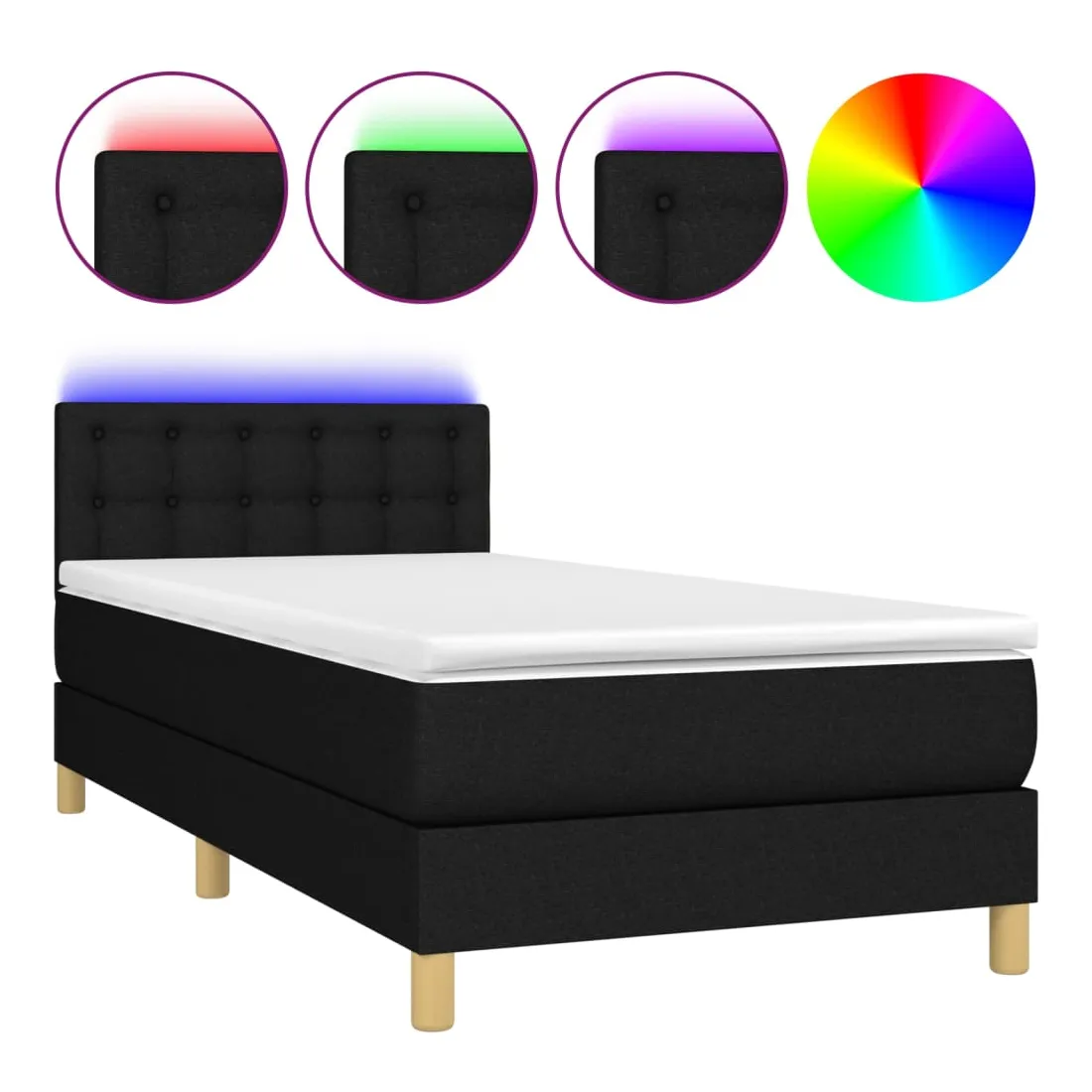 Sommier à lattes de lit avec matelas et LED Noir 90x190cm Tissu