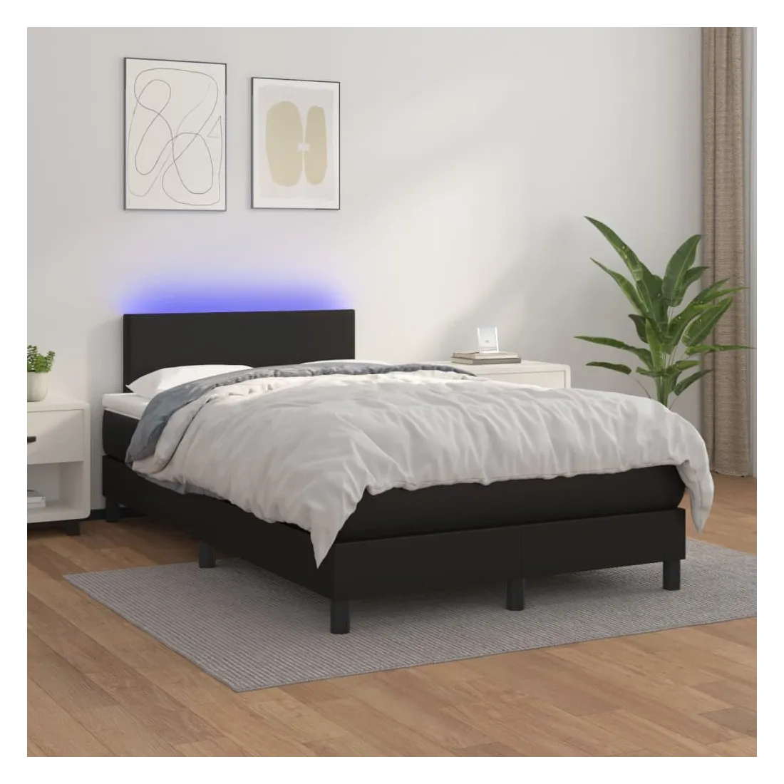 Utilisez ce sommier tapissier avec matelas et LED pour profiter d'un sommeil réparateur ! C'est le point central de votre chambre à coucher. Similicuir durable : le similicuir de qualité supérieure est un matériau très durable. Il est résistant aux taches, ce qui le rend facile à nettoyer avec un chiffon humide. La surface lisse donne également un aspect luxueux et la beauté du cuir véritable.Tête de lit pratique : la tête de lit est réglable en hauteur selon vos préférences. La tête de lit vous offre un excellent soutien du dos lorsque vous êtes assis dans votre lit pour lire ou regarder la télévision.Bande LED colorée : apportez de l'éclairage dans l'obscurité avec des lumières LED colorées !Matelas à ressorts ensachés : le ressort ensaché individuel intégré est connu pour sa très haute qualité tout en assurant un haut niveau de durabilité et d'adaptabilité. Il peut absorber efficacement le bruit et les chocs causés par les sauts et les rotations.Protège-matelas doux pour la peau : le protège-matelas est recouvert d'un tissu résistant et doux pour la peau, ce qui le rend souple et confortable. Remarque :Pour des raisons d'hygiène, le matelas ne peut pas être retourné si l'emballage est retiré ou ouvert.Chaque produit est livré avec un manuel de montage dans la boîte pour un montage facile.Seule la partie avec un symbole de ciseaux peut être coupée et seule la partie avec l'USB continuera à fonctionner comme avant.Ce produit est doté d'un connecteur USB, mais la source d'alimentation certifiée de USB 5V n'est pas incluse.