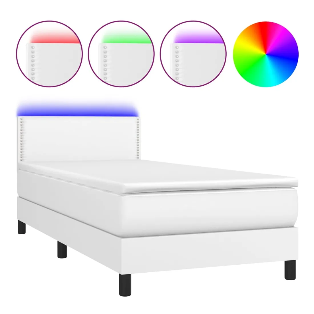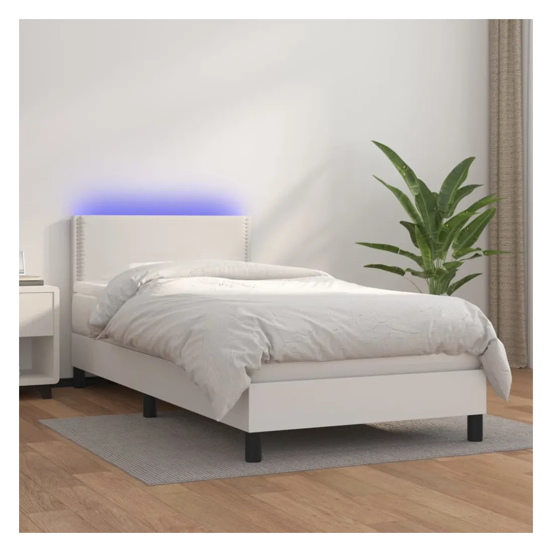 Utilisez ce sommier tapissier avec matelas et LED pour profiter d'un sommeil réparateur ! C'est le point central de votre chambre à coucher. Similicuir durable : le similicuir de qualité supérieure est un matériau très durable. Il est résistant aux taches, ce qui le rend facile à nettoyer avec un chiffon humide. La surface lisse donne également un aspect luxueux et la beauté du cuir véritable.Tête de lit pratique : la tête de lit est réglable en hauteur selon vos préférences. La tête de lit vous offre un excellent soutien du dos lorsque vous êtes assis dans votre lit pour lire ou regarder la télévision.Bande LED colorée : apportez de l'éclairage dans l'obscurité avec des lumières LED colorées !Matelas à ressorts ensachés : le ressort ensaché individuel intégré est connu pour sa très haute qualité tout en assurant un haut niveau de durabilité et d'adaptabilité. Il peut absorber efficacement le bruit et les chocs causés par les sauts et les rotations.Protège-matelas doux pour la peau : le protège-matelas est recouvert d'un tissu résistant et doux pour la peau, ce qui le rend souple et confortable. Remarque :Pour des raisons d'hygiène, le matelas ne peut pas être retourné si l'emballage est retiré ou ouvert.Chaque produit est livré avec un manuel de montage dans la boîte pour un montage facile.Seule la partie avec un symbole de ciseaux peut être coupée et seule la partie avec l'USB continuera à fonctionner comme avant.Ce produit est doté d'un connecteur USB, mais la source d'alimentation certifiée de USB 5V n'est pas incluse.