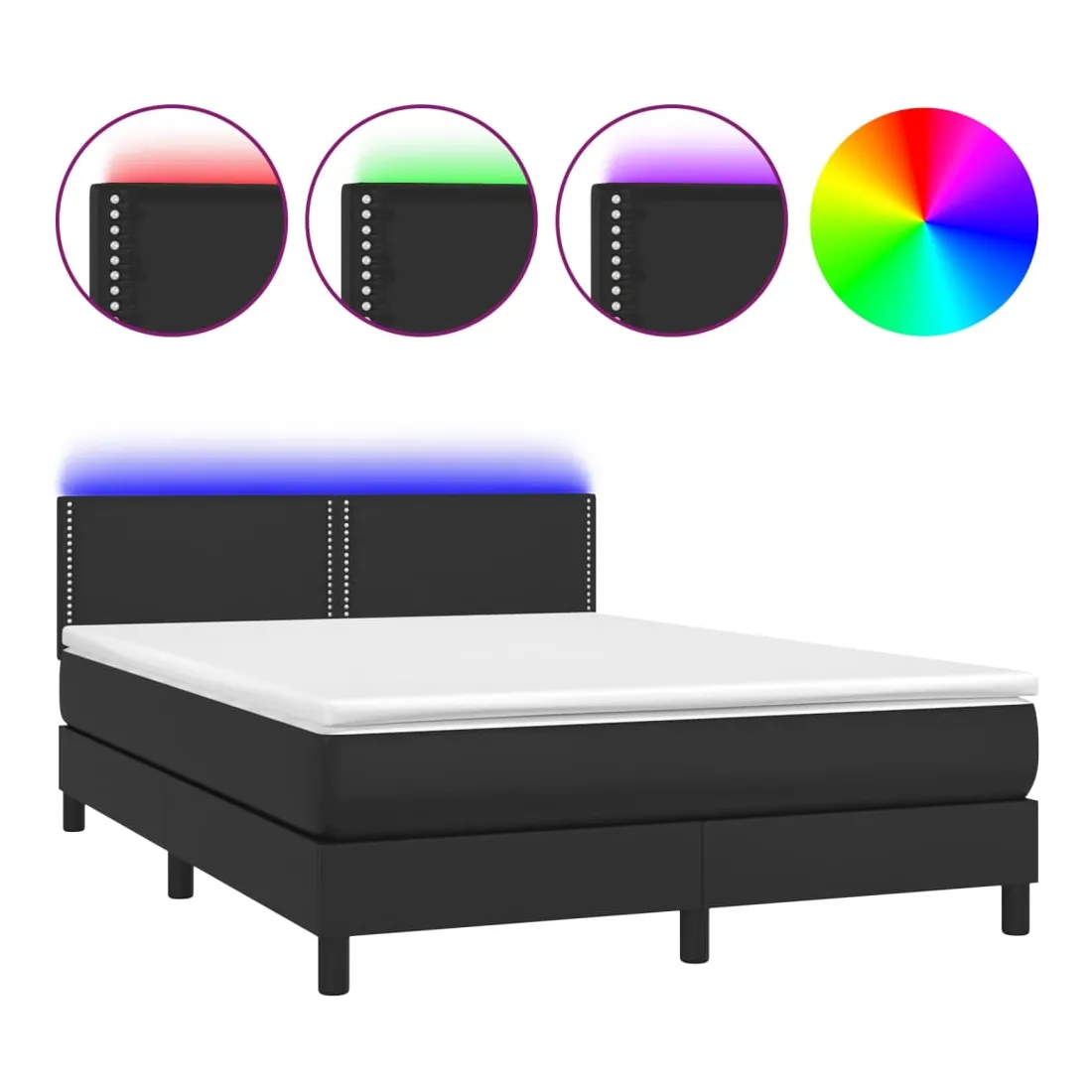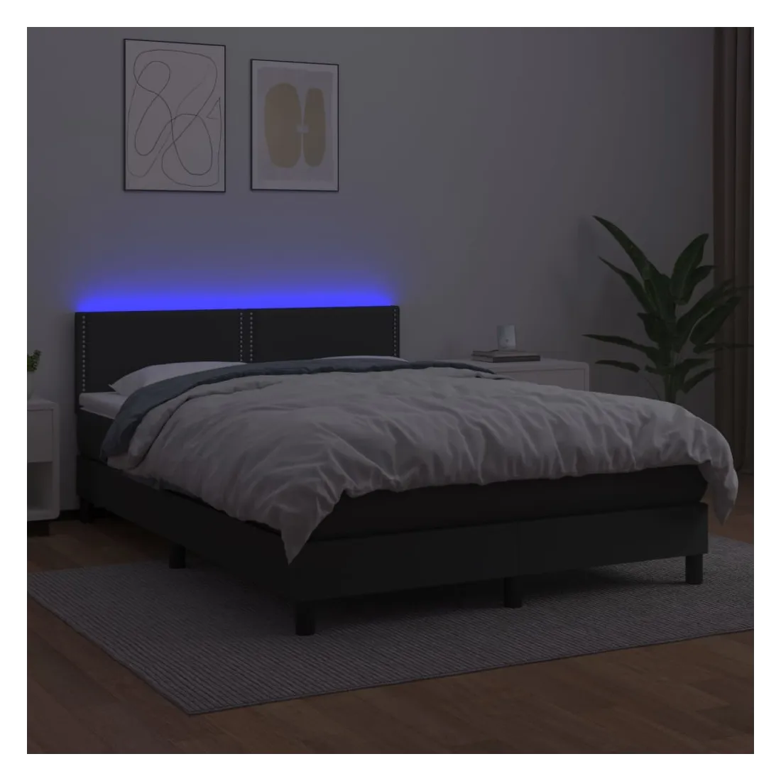 Sommier à lattes de lit avec matelas et LED Noir 140x190 cm