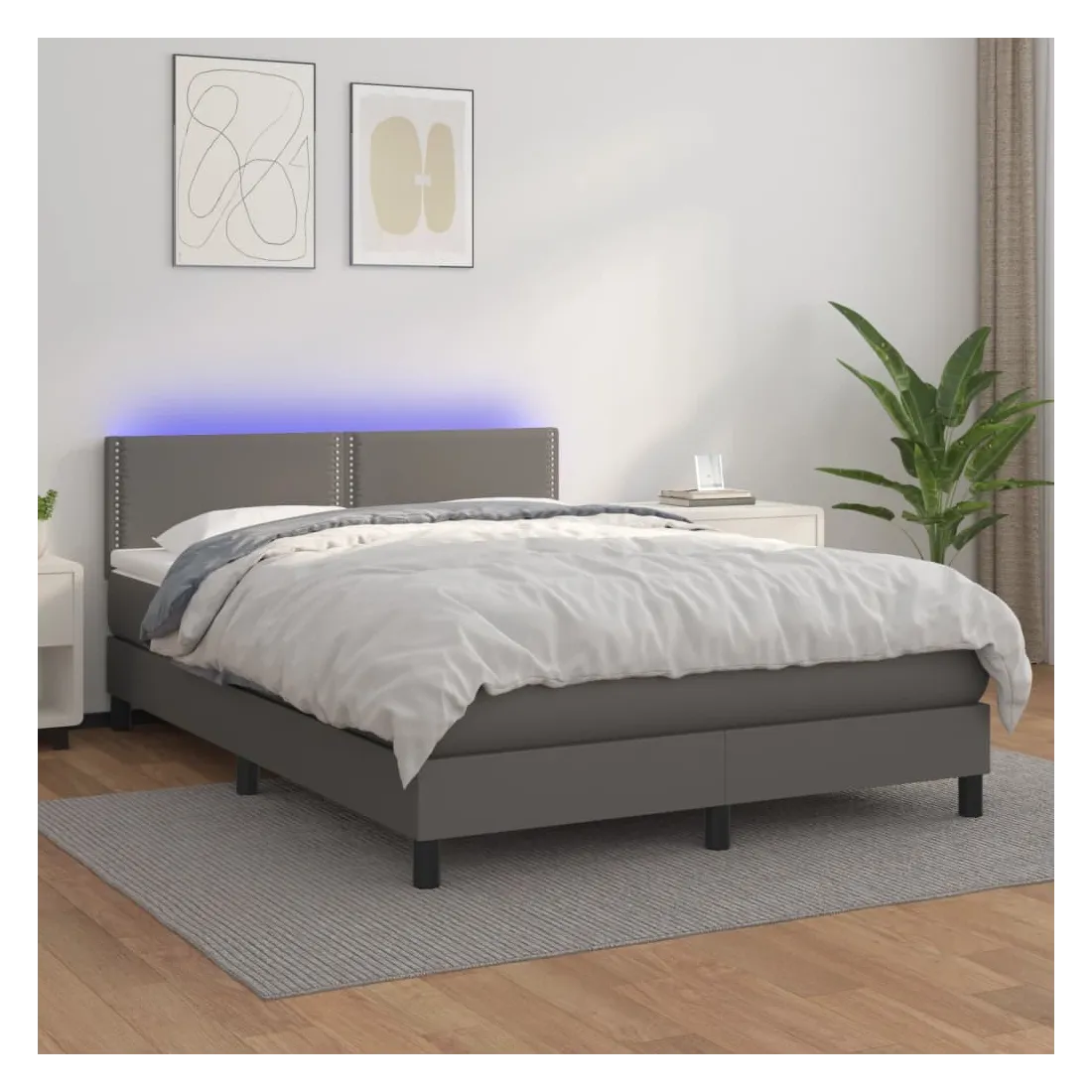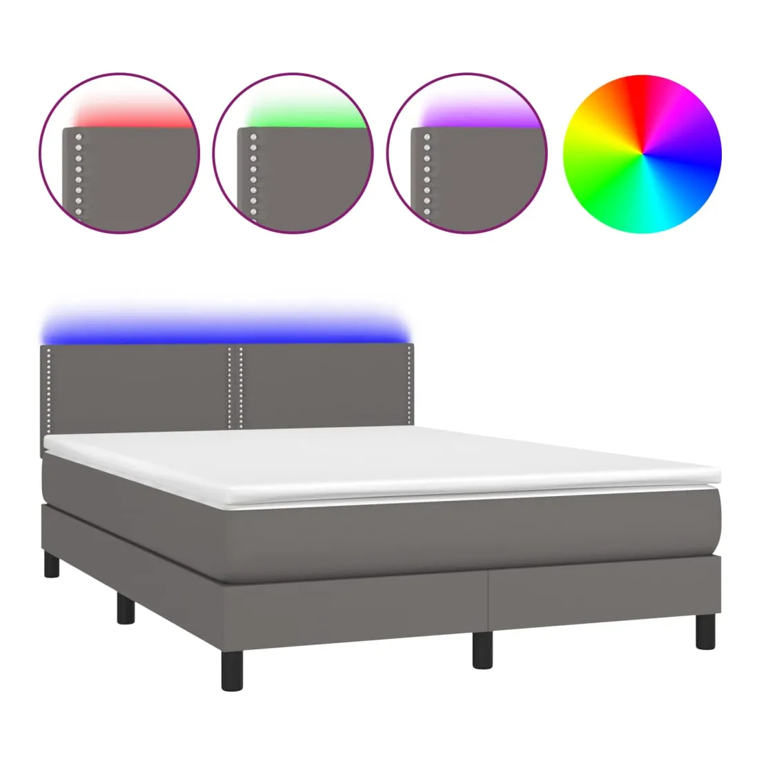 Utilisez ce sommier tapissier avec matelas et LED pour profiter d'un sommeil réparateur ! C'est le point central de votre chambre à coucher. Similicuir durable : le similicuir de qualité supérieure est un matériau très durable. Il est résistant aux taches, ce qui le rend facile à nettoyer avec un chiffon humide. La surface lisse donne également un aspect luxueux et la beauté du cuir véritable.Tête de lit pratique : la tête de lit est réglable en hauteur selon vos préférences. La tête de lit vous offre un excellent soutien du dos lorsque vous êtes assis dans votre lit pour lire ou regarder la télévision.Bande LED colorée : apportez de l'éclairage dans l'obscurité avec des lumières LED colorées !Matelas à ressorts ensachés : le ressort ensaché individuel intégré est connu pour sa très haute qualité tout en assurant un haut niveau de durabilité et d'adaptabilité. Il peut absorber efficacement le bruit et les chocs causés par les sauts et les rotations.Protège-matelas doux pour la peau : le protège-matelas est recouvert d'un tissu résistant et doux pour la peau, ce qui le rend souple et confortable. Remarque :Pour des raisons d'hygiène, le matelas ne peut pas être retourné si l'emballage est retiré ou ouvert.Chaque produit est livré avec un manuel de montage dans la boîte pour un montage facile.Seule la partie avec un symbole de ciseaux peut être coupée et seule la partie avec l'USB continuera à fonctionner comme avant.Ce produit est doté d'un connecteur USB, mais la source d'alimentation certifiée de USB 5V n'est pas incluse.