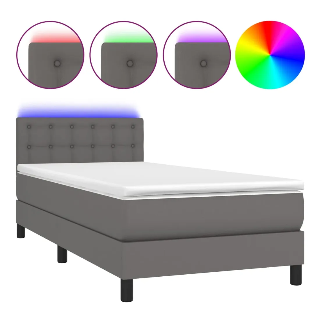 Utilisez ce sommier tapissier avec matelas et LED pour profiter d'un sommeil réparateur ! C'est le point central de votre chambre à coucher. Similicuir durable : le similicuir de qualité supérieure est un matériau très durable. Il est résistant aux taches, ce qui le rend facile à nettoyer avec un chiffon humide. La surface lisse donne également un aspect luxueux et la beauté du cuir véritable.Tête de lit pratique : la tête de lit est réglable en hauteur selon vos préférences. La tête de lit vous offre un excellent soutien du dos lorsque vous êtes assis dans votre lit pour lire ou regarder la télévision.Bande LED colorée : apportez de l'éclairage dans l'obscurité avec des lumières LED colorées !Matelas à ressorts ensachés : le ressort ensaché individuel intégré est connu pour sa très haute qualité tout en assurant un haut niveau de durabilité et d'adaptabilité. Il peut absorber efficacement le bruit et les chocs causés par les sauts et les rotations.Protège-matelas doux pour la peau : le protège-matelas est recouvert d'un tissu résistant et doux pour la peau, ce qui le rend souple et confortable. Remarque :Pour des raisons d'hygiène, le matelas ne peut pas être retourné si l'emballage est retiré ou ouvert.Chaque produit est livré avec un manuel de montage dans la boîte pour un montage facile.Seule la partie avec un symbole de ciseaux peut être coupée et seule la partie avec l'USB continuera à fonctionner comme avant.Ce produit est doté d'un connecteur USB, mais la source d'alimentation certifiée de USB 5V n'est pas incluse.