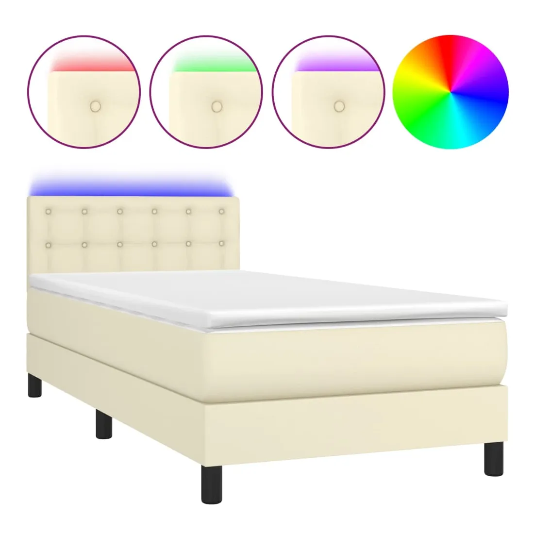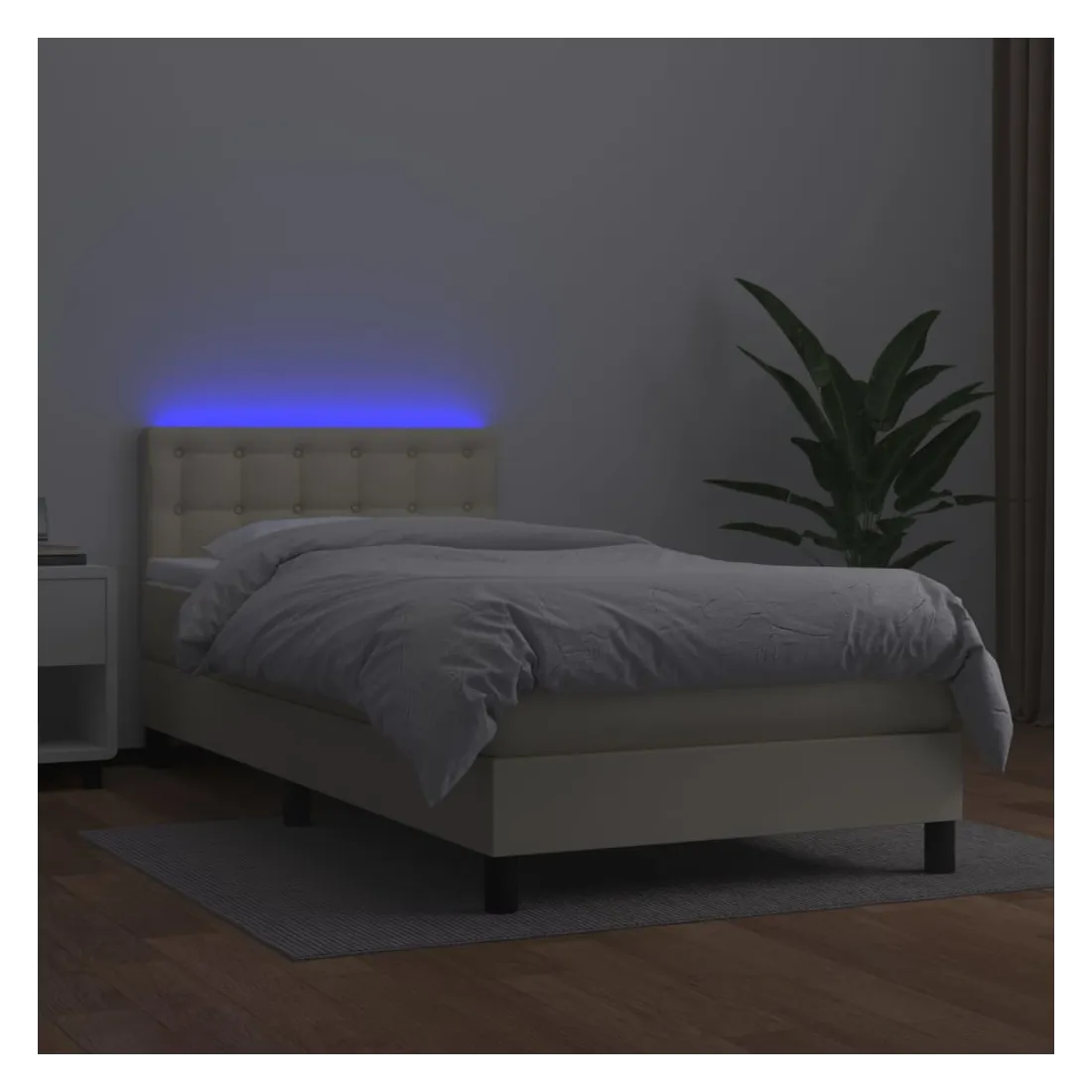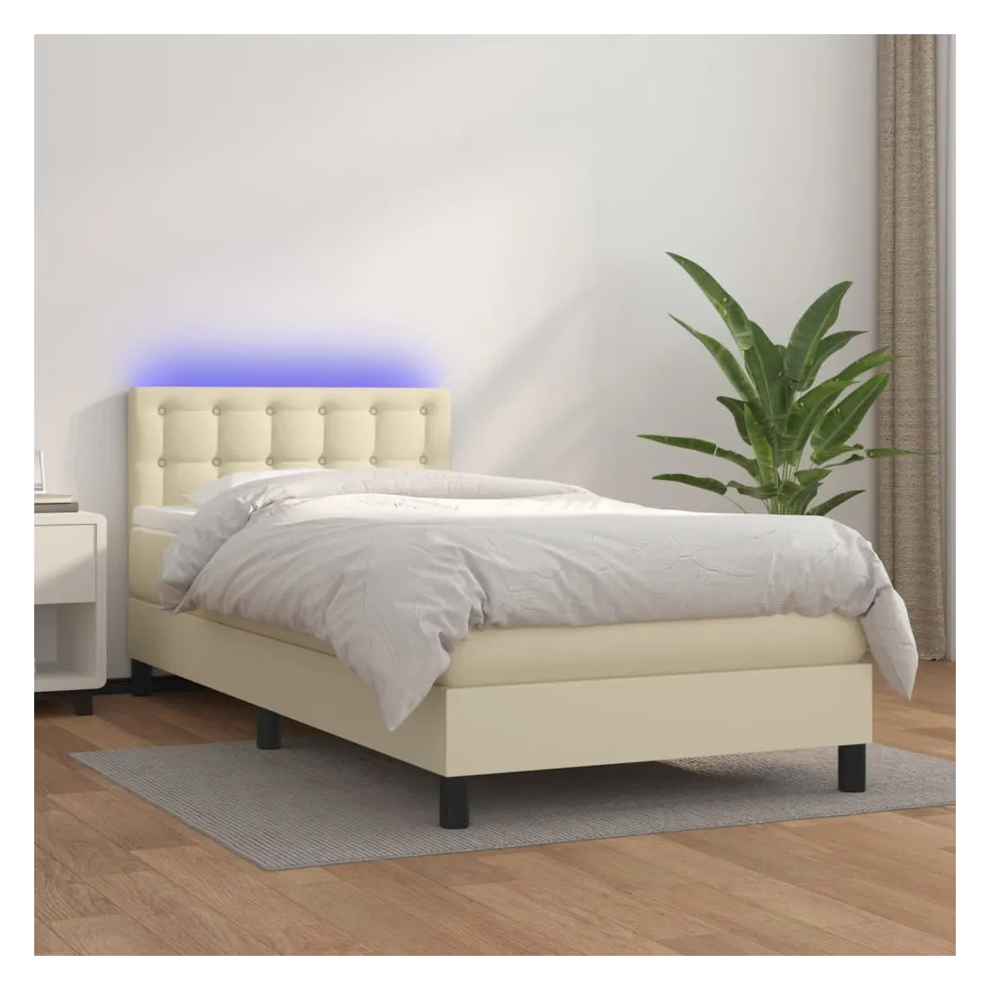 Utilisez ce sommier tapissier avec matelas et LED pour profiter d'un sommeil réparateur ! C'est le point central de votre chambre à coucher. Similicuir durable : le similicuir de qualité supérieure est un matériau très durable. Il est résistant aux taches, ce qui le rend facile à nettoyer avec un chiffon humide. La surface lisse donne également un aspect luxueux et la beauté du cuir véritable.Tête de lit pratique : la tête de lit est réglable en hauteur selon vos préférences. La tête de lit vous offre un excellent soutien du dos lorsque vous êtes assis dans votre lit pour lire ou regarder la télévision.Bande LED colorée : apportez de l'éclairage dans l'obscurité avec des lumières LED colorées !Matelas à ressorts ensachés : le ressort ensaché individuel intégré est connu pour sa très haute qualité tout en assurant un haut niveau de durabilité et d'adaptabilité. Il peut absorber efficacement le bruit et les chocs causés par les sauts et les rotations.Protège-matelas doux pour la peau : le protège-matelas est recouvert d'un tissu résistant et doux pour la peau, ce qui le rend souple et confortable. Remarque :Pour des raisons d'hygiène, le matelas ne peut pas être retourné si l'emballage est retiré ou ouvert.Chaque produit est livré avec un manuel de montage dans la boîte pour un montage facile.Seule la partie avec un symbole de ciseaux peut être coupée et seule la partie avec l'USB continuera à fonctionner comme avant.Ce produit est doté d'un connecteur USB, mais la source d'alimentation certifiée de USB 5V n'est pas incluse.