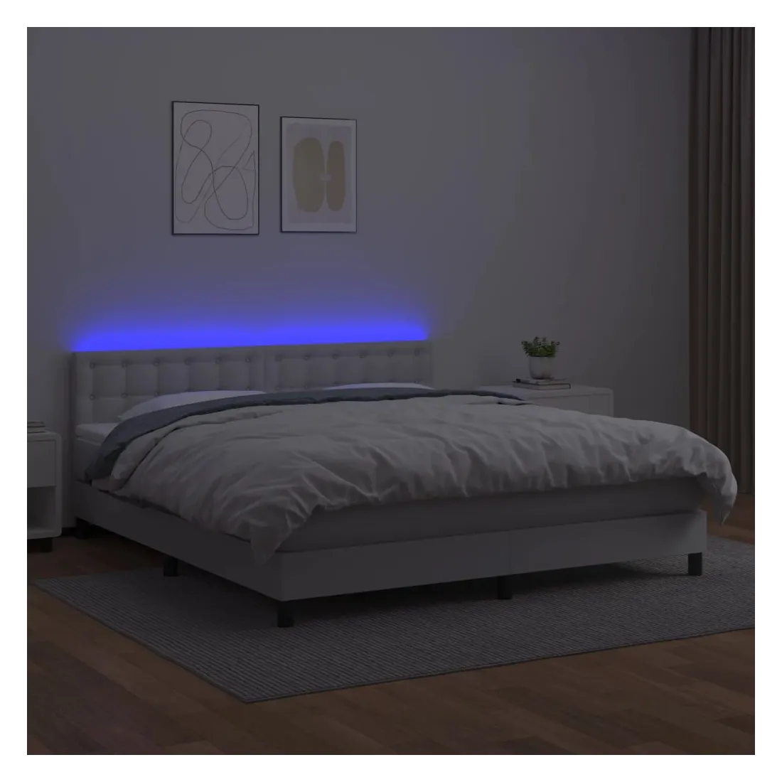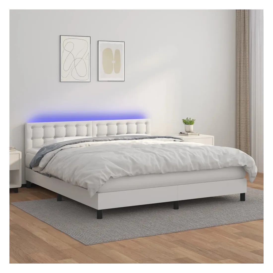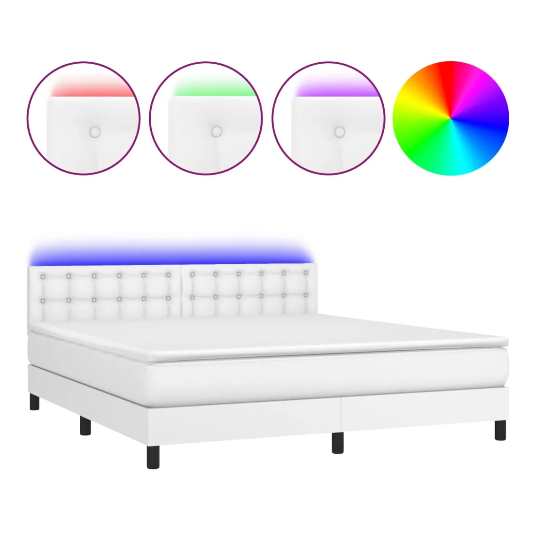 Utilisez ce sommier tapissier avec matelas et LED pour profiter d'un sommeil réparateur ! C'est le point central de votre chambre à coucher. Similicuir durable : le similicuir de qualité supérieure est un matériau très durable. Il est résistant aux taches, ce qui le rend facile à nettoyer avec un chiffon humide. La surface lisse donne également un aspect luxueux et la beauté du cuir véritable.Tête de lit pratique : la tête de lit est réglable en hauteur selon vos préférences. La tête de lit vous offre un excellent soutien du dos lorsque vous êtes assis dans votre lit pour lire ou regarder la télévision.Bande LED colorée : apportez de l'éclairage dans l'obscurité avec des lumières LED colorées !Matelas à ressorts ensachés : le ressort ensaché individuel intégré est connu pour sa très haute qualité tout en assurant un haut niveau de durabilité et d'adaptabilité. Il peut absorber efficacement le bruit et les chocs causés par les sauts et les rotations.Protège-matelas doux pour la peau : le protège-matelas est recouvert d'un tissu résistant et doux pour la peau, ce qui le rend souple et confortable. Remarque :Pour des raisons d'hygiène, le matelas ne peut pas être retourné si l'emballage est retiré ou ouvert.Chaque produit est livré avec un manuel de montage dans la boîte pour un montage facile.Seule la partie avec un symbole de ciseaux peut être coupée et seule la partie avec l'USB continuera à fonctionner comme avant.Ce produit est doté d'un connecteur USB, mais la source d'alimentation certifiée de USB 5V n'est pas incluse.