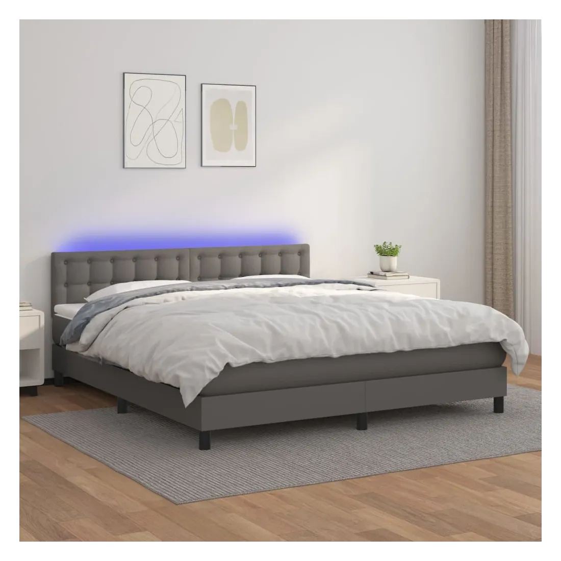 Utilisez ce sommier tapissier avec matelas et LED pour profiter d'un sommeil réparateur ! C'est le point central de votre chambre à coucher. Similicuir durable : le similicuir de qualité supérieure est un matériau très durable. Il est résistant aux taches, ce qui le rend facile à nettoyer avec un chiffon humide. La surface lisse donne également un aspect luxueux et la beauté du cuir véritable.Tête de lit pratique : la tête de lit est réglable en hauteur selon vos préférences. La tête de lit vous offre un excellent soutien du dos lorsque vous êtes assis dans votre lit pour lire ou regarder la télévision.Bande LED colorée : apportez de l'éclairage dans l'obscurité avec des lumières LED colorées !Matelas à ressorts ensachés : le ressort ensaché individuel intégré est connu pour sa très haute qualité tout en assurant un haut niveau de durabilité et d'adaptabilité. Il peut absorber efficacement le bruit et les chocs causés par les sauts et les rotations.Protège-matelas doux pour la peau : le protège-matelas est recouvert d'un tissu résistant et doux pour la peau, ce qui le rend souple et confortable. Remarque :Pour des raisons d'hygiène, le matelas ne peut pas être retourné si l'emballage est retiré ou ouvert.Chaque produit est livré avec un manuel de montage dans la boîte pour un montage facile.Seule la partie avec un symbole de ciseaux peut être coupée et seule la partie avec l'USB continuera à fonctionner comme avant.Ce produit est doté d'un connecteur USB, mais la source d'alimentation certifiée de USB 5V n'est pas incluse.