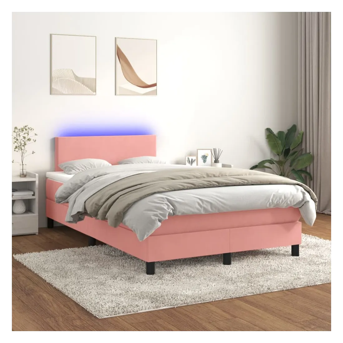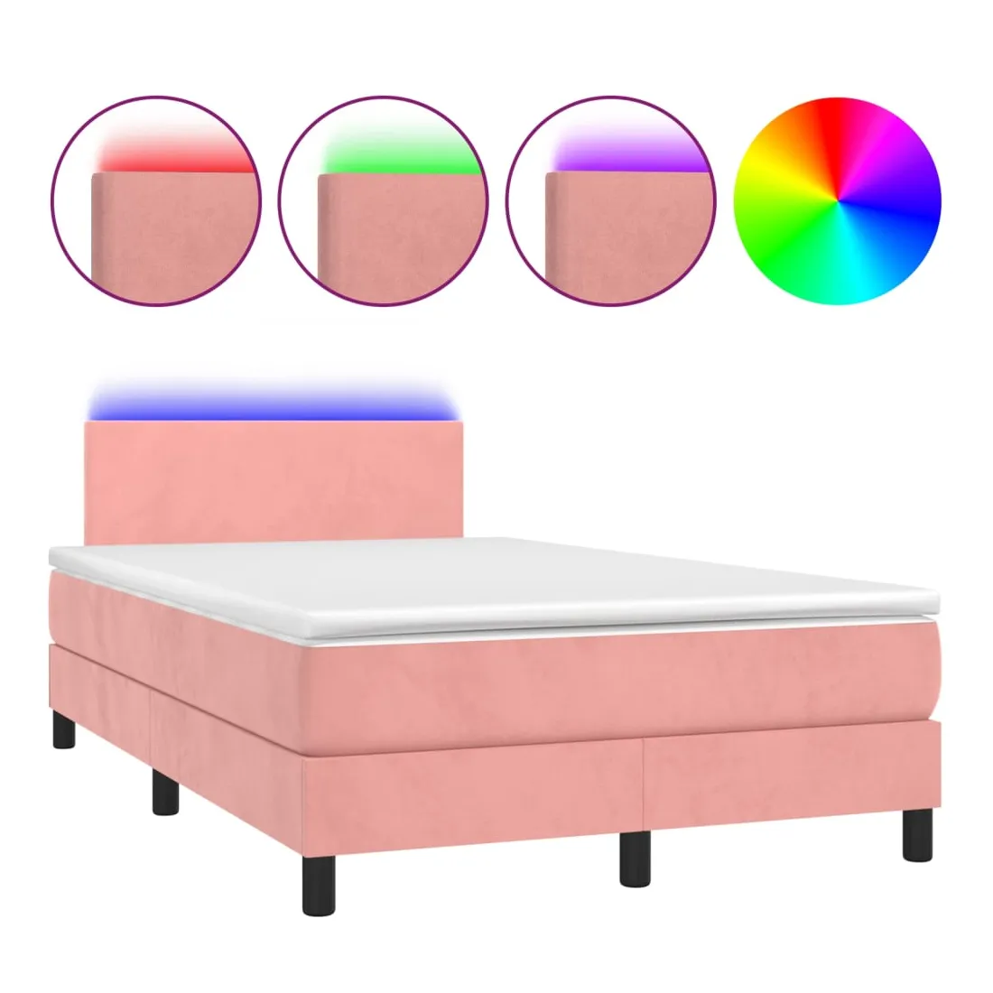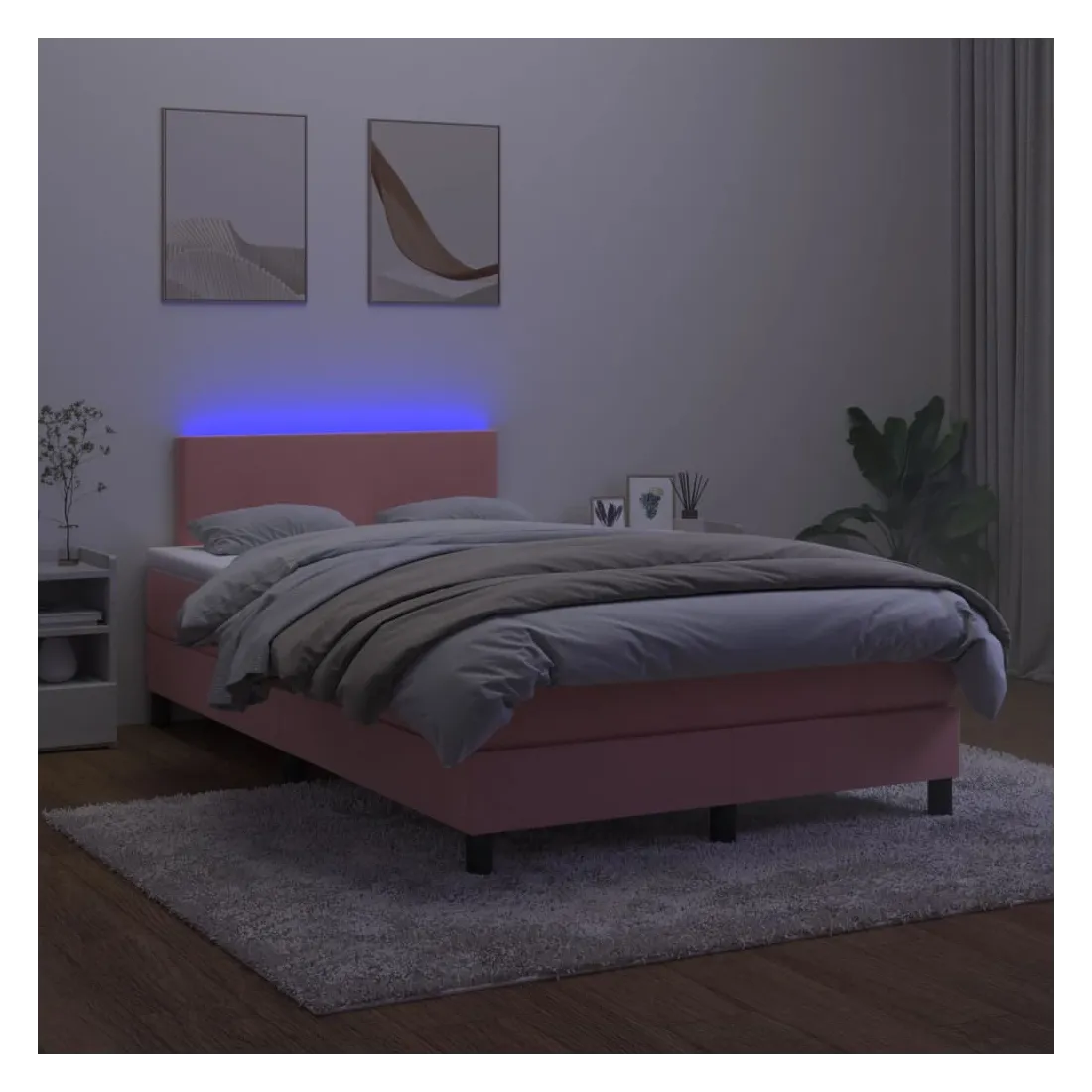 Utilisez ce sommier tapissier avec matelas et LED pour profiter d'un sommeil réparateur ! C'est le point central de votre chambre à coucher. Velours doux : le velours est un tissu doux et luxueux qui se reconnaît à son tas dense de fibres uniformément coupées qui ont une touche lisse. Le tissu en velours présente un toucher doux distinctif, ce qui le rend confortable au toucher.Tête de lit pratique : la tête de lit est réglable en hauteur selon vos préférences. La tête de lit vous offre un excellent soutien du dos lorsque vous êtes assis dans votre lit pour lire ou regarder la télévision.Bande LED colorée : apportez de l'éclairage dans l'obscurité avec des lumières LED colorées !Matelas à ressorts ensachés : le ressort ensaché individuel intégré est connu pour sa très haute qualité tout en assurant un haut niveau de durabilité et d'adaptabilité. Il peut absorber efficacement le bruit et les chocs causés par les sauts et les rotations.Protège-matelas doux pour la peau : le protège-matelas est recouvert d'un tissu résistant et doux pour la peau, ce qui le rend souple et confortable. Remarque :Pour des raisons d'hygiène, le matelas ne peut pas être retourné si l'emballage est retiré ou ouvert.Chaque produit est livré avec un manuel de montage dans la boîte pour un montage facile.Seule la partie avec un symbole de ciseaux peut être coupée et seule la partie avec l'USB continuera à fonctionner comme avant.Ce produit est doté d'un connecteur USB, mais la source d'alimentation certifiée de USB 5V n'est pas incluse.