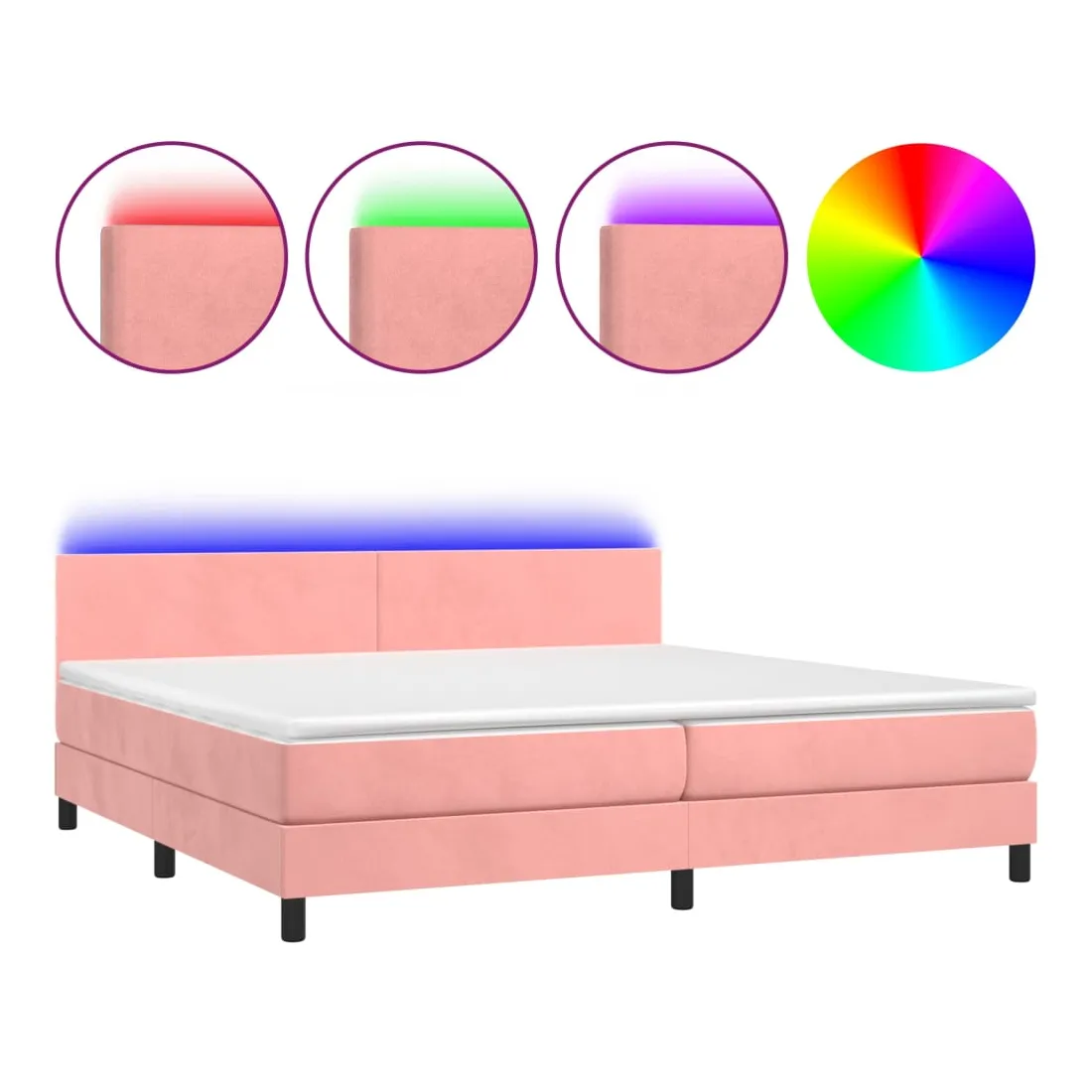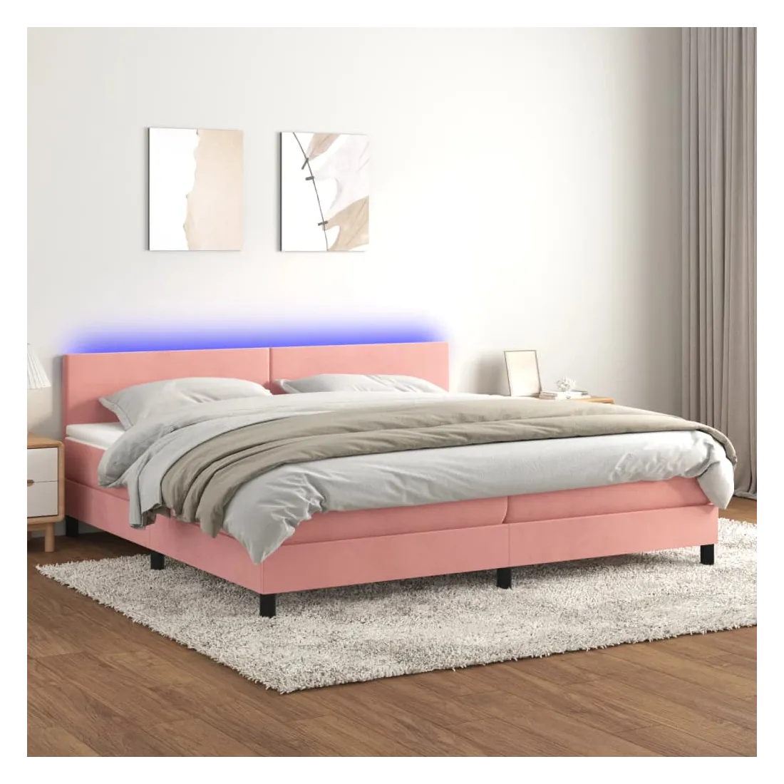 Sommier à lattes de lit avec matelas LED Rose 200x200cm Velours
