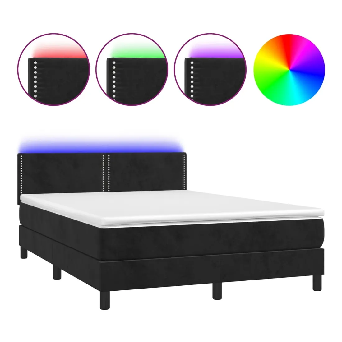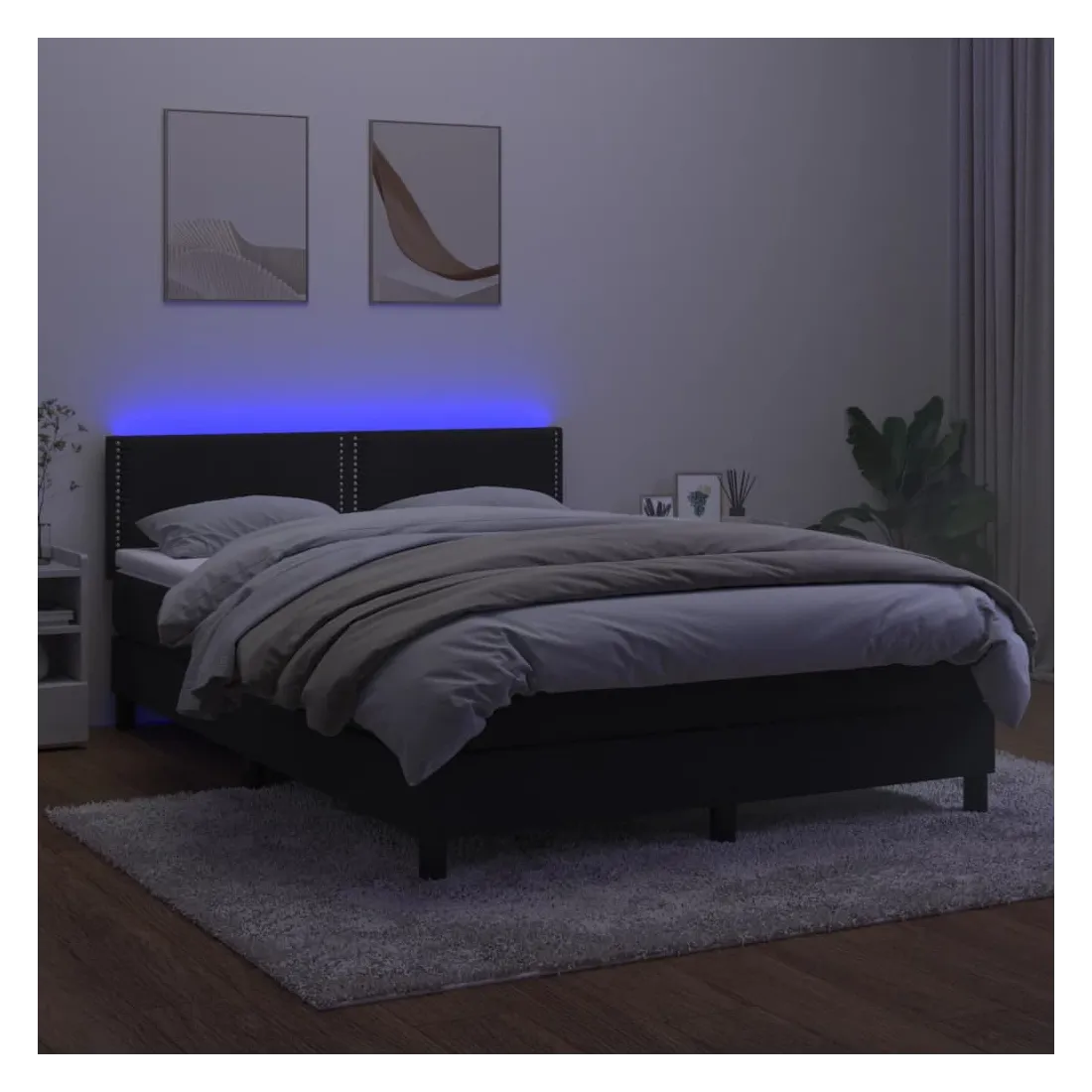 Sommier à lattes de lit avec matelas LED Noir 140x190cm Velours