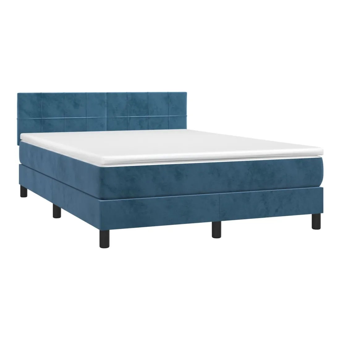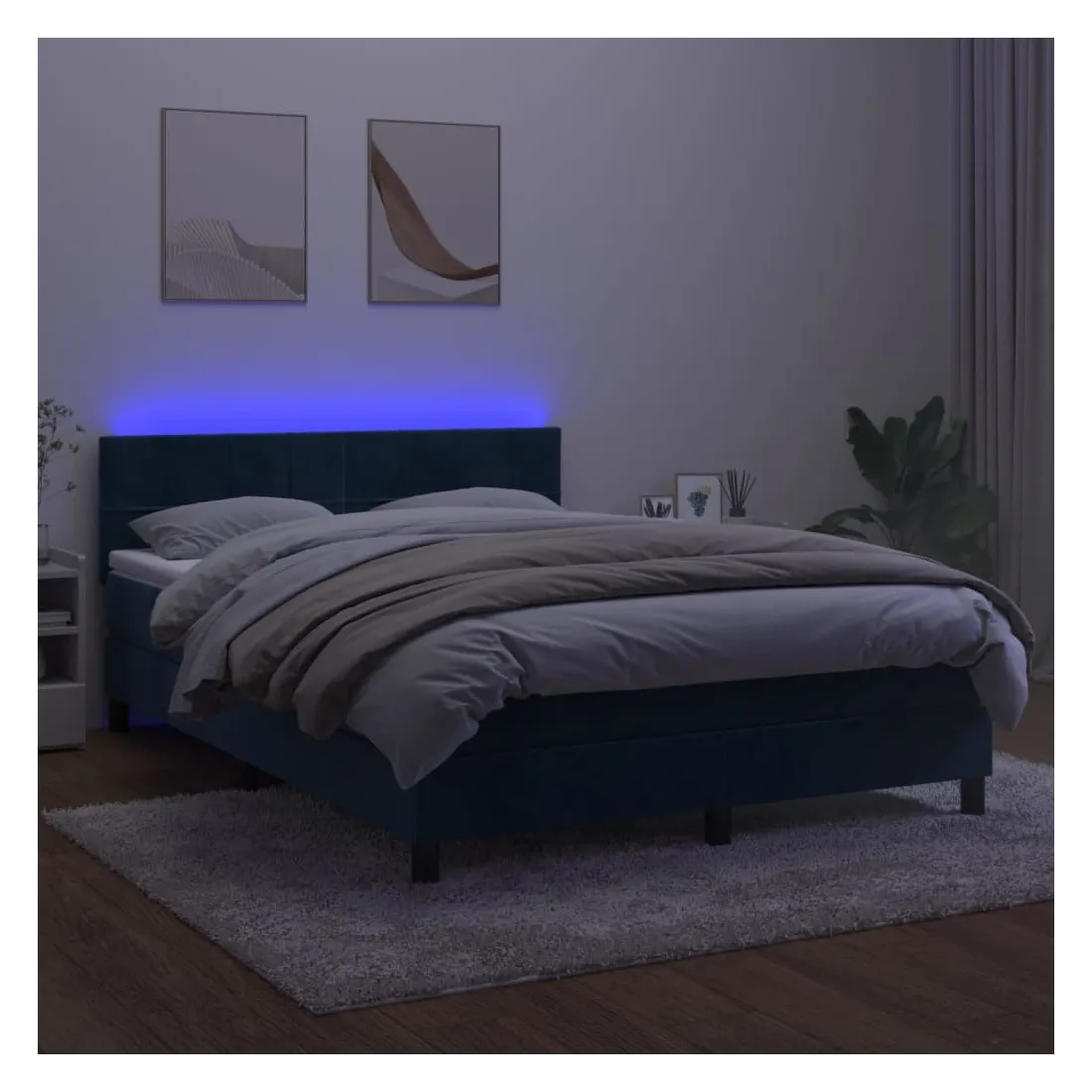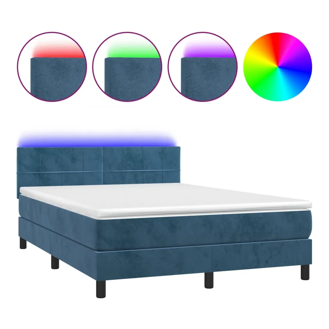 Sommier à lattes de lit avec matelas LED Bleu foncé 140x190 cm