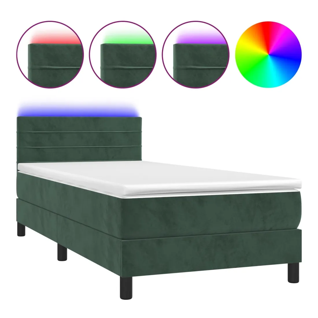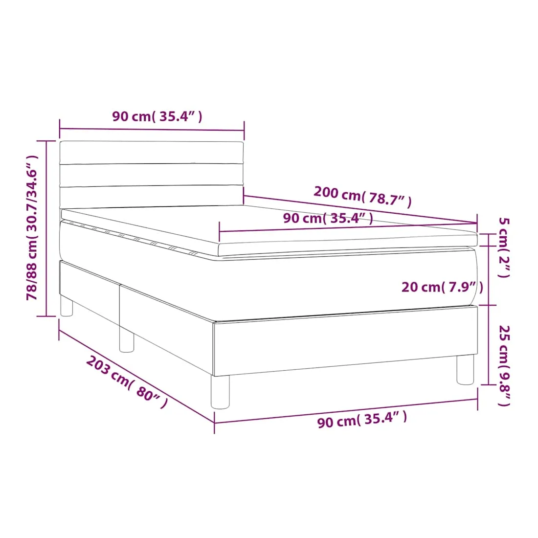 Utilisez ce sommier tapissier avec matelas et LED pour profiter d'un sommeil réparateur ! C'est le point central de votre chambre à coucher. Velours doux : le velours est un tissu doux et luxueux qui se reconnaît à son tas dense de fibres uniformément coupées qui ont une touche lisse. Le tissu en velours présente un toucher doux distinctif, ce qui le rend confortable au toucher.Tête de lit pratique : la tête de lit est réglable en hauteur selon vos préférences. La tête de lit vous offre un excellent soutien du dos lorsque vous êtes assis dans votre lit pour lire ou regarder la télévision.Bande LED colorée : apportez de l'éclairage dans l'obscurité avec des lumières LED colorées !Matelas à ressorts ensachés : le ressort ensaché individuel intégré est connu pour sa très haute qualité tout en assurant un haut niveau de durabilité et d'adaptabilité. Il peut absorber efficacement le bruit et les chocs causés par les sauts et les rotations.Protège-matelas doux pour la peau : le protège-matelas est recouvert d'un tissu résistant et doux pour la peau, ce qui le rend souple et confortable. Remarque :Pour des raisons d'hygiène, le matelas ne peut pas être retourné si l'emballage est retiré ou ouvert.Chaque produit est livré avec un manuel de montage dans la boîte pour un montage facile.Seule la partie avec un symbole de ciseaux peut être coupée et seule la partie avec l'USB continuera à fonctionner comme avant.Ce produit est doté d'un connecteur USB, mais la source d'alimentation certifiée de USB 5V n'est pas incluse.