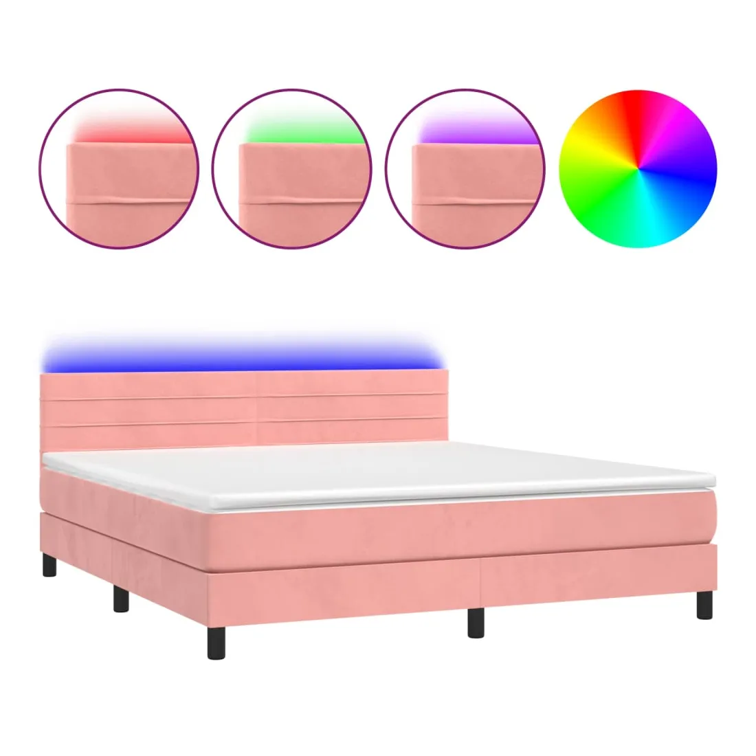 Utilisez ce sommier tapissier avec matelas et LED pour profiter d'un sommeil réparateur ! C'est le point central de votre chambre à coucher. Velours doux : le velours est un tissu doux et luxueux qui se reconnaît à son tas dense de fibres uniformément coupées qui ont une touche lisse. Le tissu en velours présente un toucher doux distinctif, ce qui le rend confortable au toucher.Tête de lit pratique : la tête de lit est réglable en hauteur selon vos préférences. La tête de lit vous offre un excellent soutien du dos lorsque vous êtes assis dans votre lit pour lire ou regarder la télévision.Bande LED colorée : apportez de l'éclairage dans l'obscurité avec des lumières LED colorées !Matelas à ressorts ensachés : le ressort ensaché individuel intégré est connu pour sa très haute qualité tout en assurant un haut niveau de durabilité et d'adaptabilité. Il peut absorber efficacement le bruit et les chocs causés par les sauts et les rotations.Protège-matelas doux pour la peau : le protège-matelas est recouvert d'un tissu résistant et doux pour la peau, ce qui le rend souple et confortable. Remarque :Pour des raisons d'hygiène, le matelas ne peut pas être retourné si l'emballage est retiré ou ouvert.Chaque produit est livré avec un manuel de montage dans la boîte pour un montage facile.Seule la partie avec un symbole de ciseaux peut être coupée et seule la partie avec l'USB continuera à fonctionner comme avant.Ce produit est doté d'un connecteur USB, mais la source d'alimentation certifiée de USB 5V n'est pas incluse.