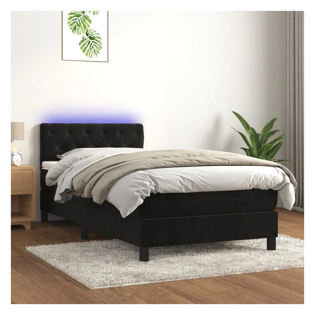 Utilisez ce sommier tapissier avec matelas et LED pour profiter d'un sommeil réparateur ! C'est le point central de votre chambre à coucher. Velours doux : le velours est un tissu doux et luxueux qui se reconnaît à son tas dense de fibres uniformément coupées qui ont une touche lisse. Le tissu en velours présente un toucher doux distinctif, ce qui le rend confortable au toucher.Tête de lit pratique : la tête de lit est réglable en hauteur selon vos préférences. La tête de lit vous offre un excellent soutien du dos lorsque vous êtes assis dans votre lit pour lire ou regarder la télévision.Bande LED colorée : apportez de l'éclairage dans l'obscurité avec des lumières LED colorées !Matelas à ressorts ensachés : le ressort ensaché individuel intégré est connu pour sa très haute qualité tout en assurant un haut niveau de durabilité et d'adaptabilité. Il peut absorber efficacement le bruit et les chocs causés par les sauts et les rotations.Protège-matelas doux pour la peau : le protège-matelas est recouvert d'un tissu résistant et doux pour la peau, ce qui le rend souple et confortable. Remarque :Pour des raisons d'hygiène, le matelas ne peut pas être retourné si l'emballage est retiré ou ouvert.Chaque produit est livré avec un manuel de montage dans la boîte pour un montage facile.Seule la partie avec un symbole de ciseaux peut être coupée et seule la partie avec l'USB continuera à fonctionner comme avant.Ce produit est doté d'un connecteur USB, mais la source d'alimentation certifiée de USB 5V n'est pas incluse.