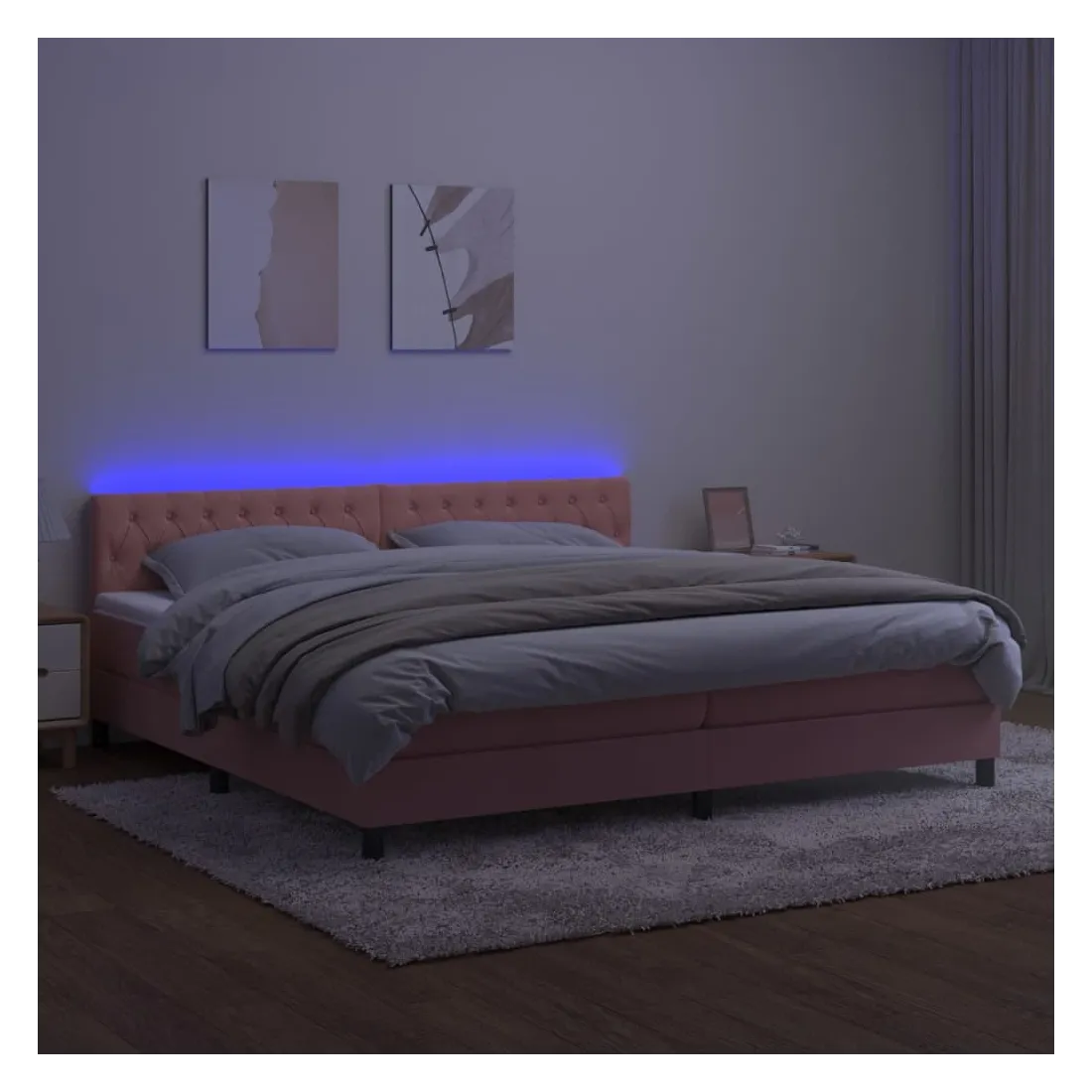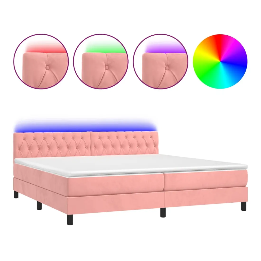 Utilisez ce sommier tapissier avec matelas et LED pour profiter d'un sommeil réparateur ! C'est le point central de votre chambre à coucher. Velours doux : le velours est un tissu doux et luxueux qui se reconnaît à son tas dense de fibres uniformément coupées qui ont une touche lisse. Le tissu en velours présente un toucher doux distinctif, ce qui le rend confortable au toucher.Tête de lit pratique : la tête de lit est réglable en hauteur selon vos préférences. La tête de lit vous offre un excellent soutien du dos lorsque vous êtes assis dans votre lit pour lire ou regarder la télévision.Bande LED colorée : apportez de l'éclairage dans l'obscurité avec des lumières LED colorées !Matelas à ressorts ensachés : le ressort ensaché individuel intégré est connu pour sa très haute qualité tout en assurant un haut niveau de durabilité et d'adaptabilité. Il peut absorber efficacement le bruit et les chocs causés par les sauts et les rotations.Protège-matelas doux pour la peau : le protège-matelas est recouvert d'un tissu résistant et doux pour la peau, ce qui le rend souple et confortable. Remarque :Pour des raisons d'hygiène, le matelas ne peut pas être retourné si l'emballage est retiré ou ouvert.Chaque produit est livré avec un manuel de montage dans la boîte pour un montage facile.Seule la partie avec un symbole de ciseaux peut être coupée et seule la partie avec l'USB continuera à fonctionner comme avant.Ce produit est doté d'un connecteur USB, mais la source d'alimentation certifiée de USB 5V n'est pas incluse.