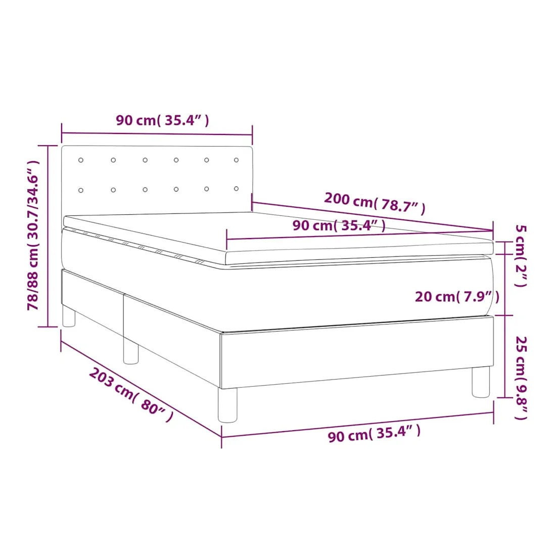 Utilisez ce sommier tapissier avec matelas et LED pour profiter d'un sommeil réparateur ! C'est le point central de votre chambre à coucher. Velours doux : le velours est un tissu doux et luxueux qui se reconnaît à son tas dense de fibres uniformément coupées qui ont une touche lisse. Le tissu en velours présente un toucher doux distinctif, ce qui le rend confortable au toucher.Tête de lit pratique : la tête de lit est réglable en hauteur selon vos préférences. La tête de lit vous offre un excellent soutien du dos lorsque vous êtes assis dans votre lit pour lire ou regarder la télévision.Bande LED colorée : apportez de l'éclairage dans l'obscurité avec des lumières LED colorées !Matelas à ressorts ensachés : le ressort ensaché individuel intégré est connu pour sa très haute qualité tout en assurant un haut niveau de durabilité et d'adaptabilité. Il peut absorber efficacement le bruit et les chocs causés par les sauts et les rotations.Protège-matelas doux pour la peau : le protège-matelas est recouvert d'un tissu résistant et doux pour la peau, ce qui le rend souple et confortable. Remarque :Pour des raisons d'hygiène, le matelas ne peut pas être retourné si l'emballage est retiré ou ouvert.Chaque produit est livré avec un manuel de montage dans la boîte pour un montage facile.Seule la partie avec un symbole de ciseaux peut être coupée et seule la partie avec l'USB continuera à fonctionner comme avant.Ce produit est doté d'un connecteur USB, mais la source d'alimentation certifiée de USB 5V n'est pas incluse.
