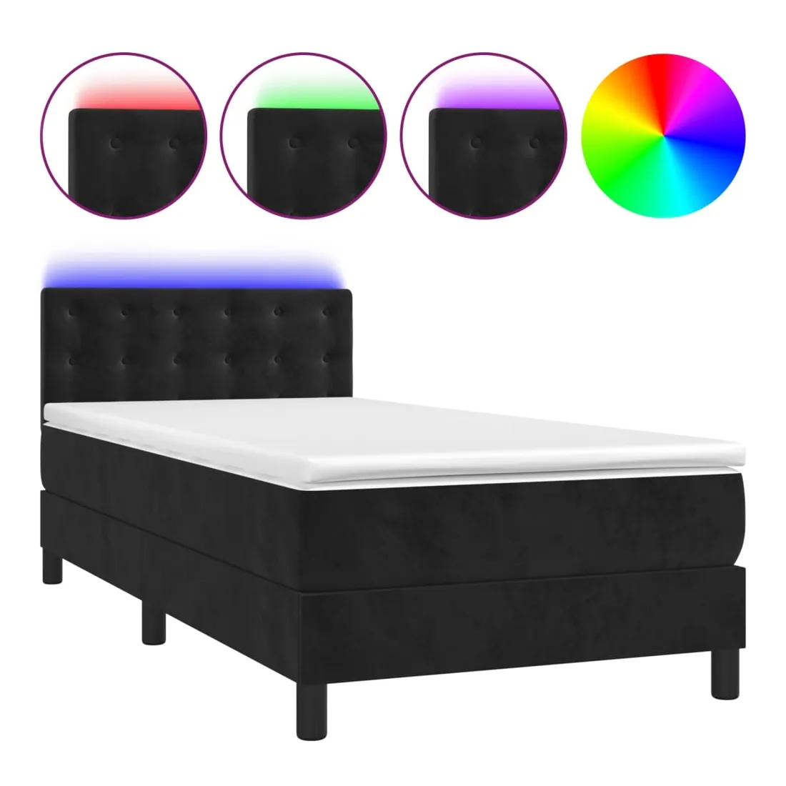Utilisez ce sommier tapissier avec matelas et LED pour profiter d'un sommeil réparateur ! C'est le point central de votre chambre à coucher. Velours doux : le velours est un tissu doux et luxueux qui se reconnaît à son tas dense de fibres uniformément coupées qui ont une touche lisse. Le tissu en velours présente un toucher doux distinctif, ce qui le rend confortable au toucher.Tête de lit pratique : la tête de lit est réglable en hauteur selon vos préférences. La tête de lit vous offre un excellent soutien du dos lorsque vous êtes assis dans votre lit pour lire ou regarder la télévision.Bande LED colorée : apportez de l'éclairage dans l'obscurité avec des lumières LED colorées !Matelas à ressorts ensachés : le ressort ensaché individuel intégré est connu pour sa très haute qualité tout en assurant un haut niveau de durabilité et d'adaptabilité. Il peut absorber efficacement le bruit et les chocs causés par les sauts et les rotations.Protège-matelas doux pour la peau : le protège-matelas est recouvert d'un tissu résistant et doux pour la peau, ce qui le rend souple et confortable. Remarque :Pour des raisons d'hygiène, le matelas ne peut pas être retourné si l'emballage est retiré ou ouvert.Chaque produit est livré avec un manuel de montage dans la boîte pour un montage facile.Seule la partie avec un symbole de ciseaux peut être coupée et seule la partie avec l'USB continuera à fonctionner comme avant.Ce produit est doté d'un connecteur USB, mais la source d'alimentation certifiée de USB 5V n'est pas incluse.