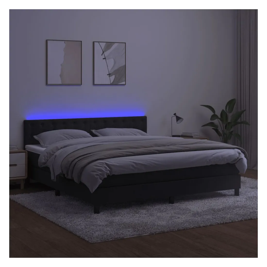 Sommier à lattes de lit avec matelas et LED Noir 160x200 cm