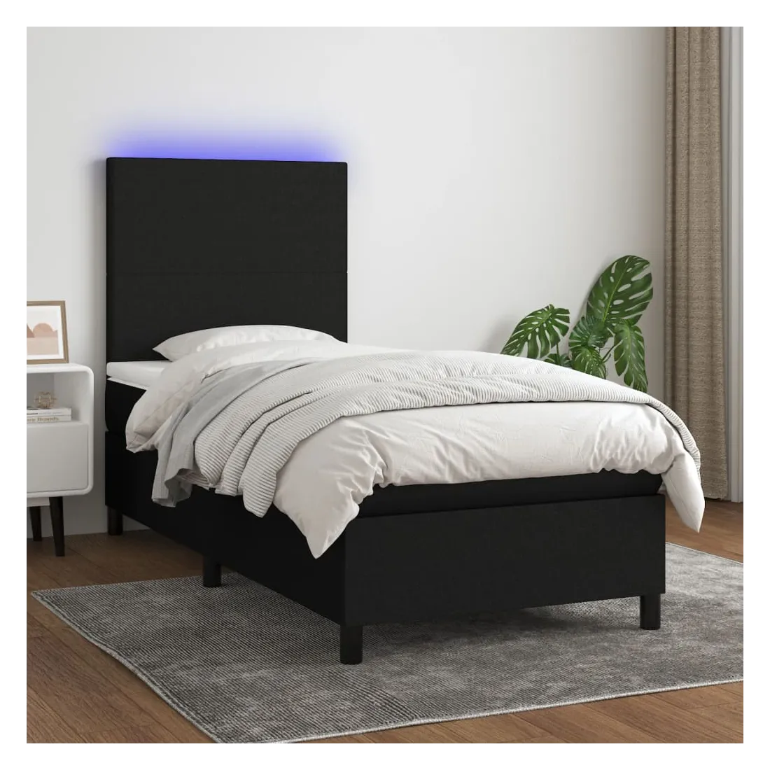 Utilisez ce sommier tapissier avec matelas et LED pour profiter d'un sommeil réparateur ! C'est le point central de votre chambre à coucher. Tissu durable : le tissu présente un aspect simple et épuré, et il est respirant et durable.Tête de lit pratique : la tête de lit est réglable en hauteur selon vos préférences. La tête de lit vous offre un excellent soutien du dos lorsque vous êtes assis dans votre lit pour lire ou regarder la télévision.Bande LED colorée : apportez de l'éclairage dans l'obscurité avec des lumières LED colorées !Matelas à ressorts ensachés : le ressort ensaché individuel intégré est connu pour sa très haute qualité tout en assurant un haut niveau de durabilité et d'adaptabilité. Il peut absorber efficacement le bruit et les chocs causés par les sauts et les rotations.Protège-matelas doux pour la peau : le protège-matelas est recouvert d'un tissu résistant et doux pour la peau, ce qui le rend souple et confortable. Remarque :Pour des raisons d'hygiène, le matelas ne peut pas être retourné si l'emballage est retiré ou ouvert.Seule la partie avec un symbole de ciseaux peut être coupée et seule la partie avec l'USB continuera à fonctionner comme avant.Chaque produit est livré avec un manuel de montage dans la boîte pour un montage facile.Ce produit est doté d'un connecteur USB, mais la source d'alimentation certifiée de USB 5V n'est pas incluse.