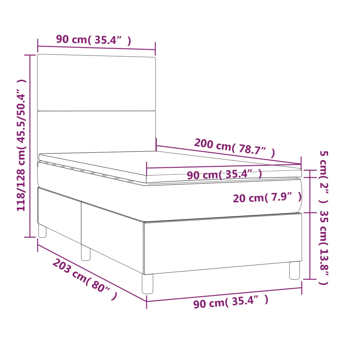 • Dimensions totales : 203 x 90 x 118/128 cm (L x l x H)