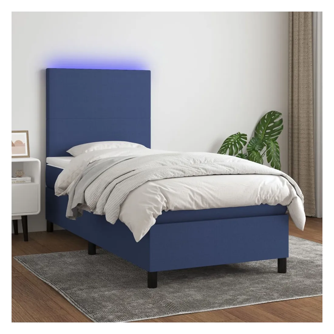 Utilisez ce sommier tapissier avec matelas et LED pour profiter d'un sommeil réparateur ! C'est le point central de votre chambre à coucher. Tissu durable : le tissu présente un aspect simple et épuré, et il est respirant et durable.Tête de lit pratique : la tête de lit est réglable en hauteur selon vos préférences. La tête de lit vous offre un excellent soutien du dos lorsque vous êtes assis dans votre lit pour lire ou regarder la télévision.Bande LED colorée : apportez de l'éclairage dans l'obscurité avec des lumières LED colorées !Matelas à ressorts ensachés : le ressort ensaché individuel intégré est connu pour sa très haute qualité tout en assurant un haut niveau de durabilité et d'adaptabilité. Il peut absorber efficacement le bruit et les chocs causés par les sauts et les rotations.Protège-matelas doux pour la peau : le protège-matelas est recouvert d'un tissu résistant et doux pour la peau, ce qui le rend souple et confortable. Remarque :Pour des raisons d'hygiène, le matelas ne peut pas être retourné si l'emballage est retiré ou ouvert.Seule la partie avec un symbole de ciseaux peut être coupée et seule la partie avec l'USB continuera à fonctionner comme avant.Chaque produit est livré avec un manuel de montage dans la boîte pour un montage facile.Ce produit est doté d'un connecteur USB, mais la source d'alimentation certifiée de USB 5V n'est pas incluse.