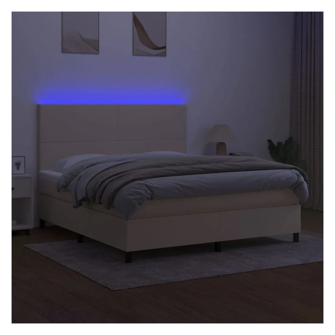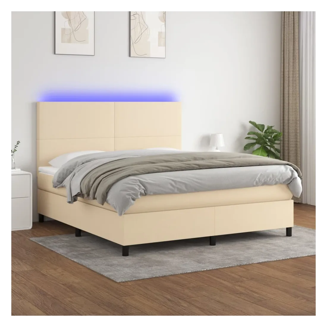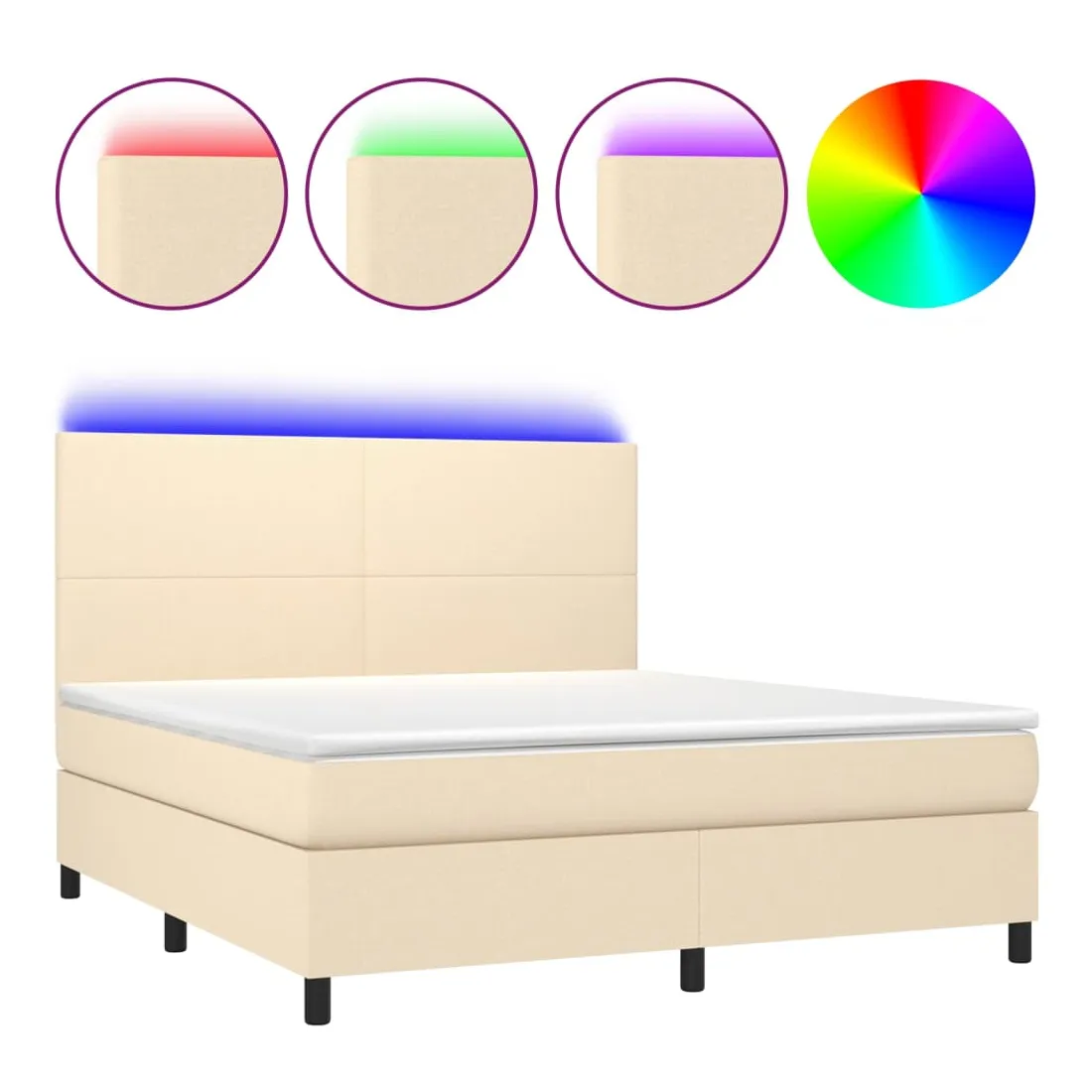 Utilisez ce sommier tapissier avec matelas et LED pour profiter d'un sommeil réparateur ! C'est le point central de votre chambre à coucher. Tissu durable : le tissu présente un aspect simple et épuré, et il est respirant et durable.Tête de lit pratique : la tête de lit est réglable en hauteur selon vos préférences. La tête de lit vous offre un excellent soutien du dos lorsque vous êtes assis dans votre lit pour lire ou regarder la télévision.Bande LED colorée : apportez de l'éclairage dans l'obscurité avec des lumières LED colorées !Matelas à ressorts ensachés : le ressort ensaché individuel intégré est connu pour sa très haute qualité tout en assurant un haut niveau de durabilité et d'adaptabilité. Il peut absorber efficacement le bruit et les chocs causés par les sauts et les rotations.Protège-matelas doux pour la peau : le protège-matelas est recouvert d'un tissu résistant et doux pour la peau, ce qui le rend souple et confortable. Remarque :Pour des raisons d'hygiène, le matelas ne peut pas être retourné si l'emballage est retiré ou ouvert.Seule la partie avec un symbole de ciseaux peut être coupée et seule la partie avec l'USB continuera à fonctionner comme avant.Chaque produit est livré avec un manuel de montage dans la boîte pour un montage facile.Ce produit est doté d'un connecteur USB, mais la source d'alimentation certifiée de USB 5V n'est pas incluse.