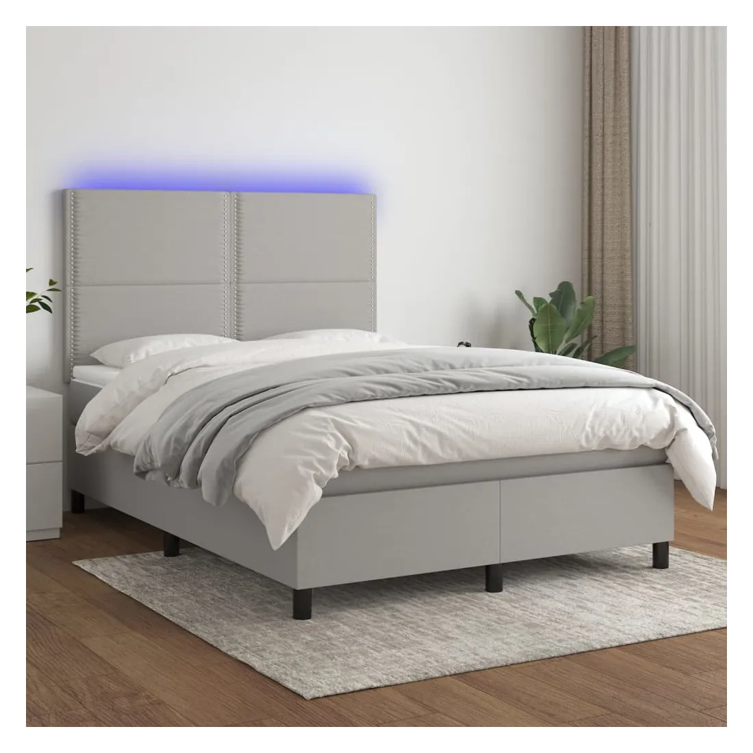 Utilisez ce sommier tapissier avec matelas et LED pour profiter d'un sommeil réparateur ! C'est le point central de votre chambre à coucher. Tissu durable : le tissu présente un aspect simple et épuré, et il est respirant et durable.Tête de lit pratique : la tête de lit est réglable en hauteur selon vos préférences. La tête de lit vous offre un excellent soutien du dos lorsque vous êtes assis dans votre lit pour lire ou regarder la télévision.Bande LED colorée : apportez de l'éclairage dans l'obscurité avec des lumières LED colorées !Matelas à ressorts ensachés : le ressort ensaché individuel intégré est connu pour sa très haute qualité tout en assurant un haut niveau de durabilité et d'adaptabilité. Il peut absorber efficacement le bruit et les chocs causés par les sauts et les rotations.Protège-matelas doux pour la peau : le protège-matelas est recouvert d'un tissu résistant et doux pour la peau, ce qui le rend souple et confortable. Remarque :Pour des raisons d'hygiène, le matelas ne peut pas être retourné si l'emballage est retiré ou ouvert.Seule la partie avec un symbole de ciseaux peut être coupée et seule la partie avec l'USB continuera à fonctionner comme avant.Chaque produit est livré avec un manuel de montage dans la boîte pour un montage facile.Ce produit est doté d'un connecteur USB, mais la source d'alimentation certifiée de USB 5V n'est pas incluse.