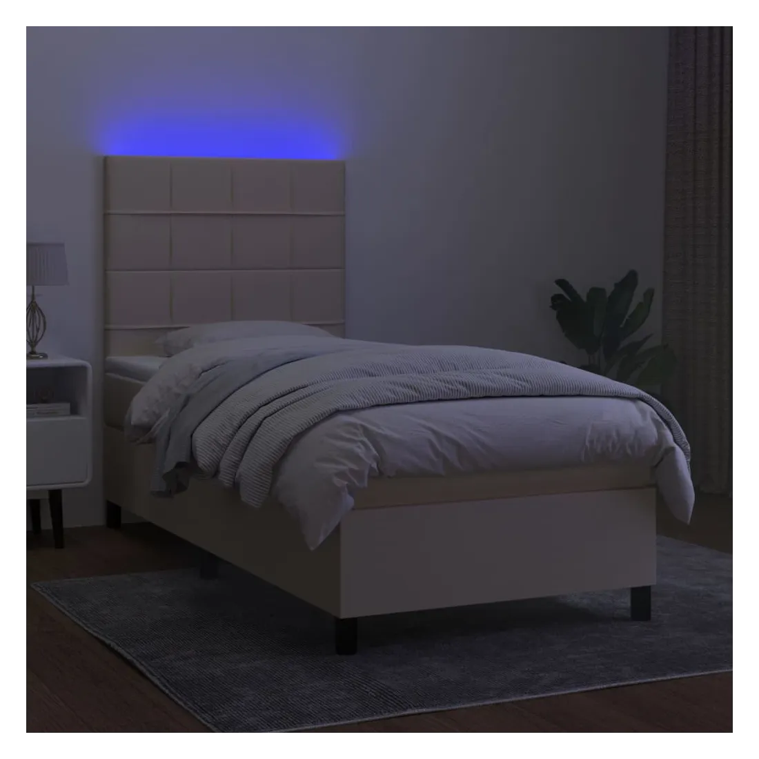vidaXLUtilisez ce sommier tapissier avec matelas et LED pour profiter d'un sommeil réparateur ! C'est le point central de votre chambre à coucher. Tissu durable : le tissu présente un aspect simple et épuré, et il est respirant et durable.Tête de lit pratique : la tête de lit est réglable en hauteur selon vos préférences. La tête de lit vous offre un excellent soutien du dos lorsque vous êtes assis dans votre lit pour lire ou regarder la télévision.Bande LED colorée : apportez de l'éclairage dans l'obscurité avec des lumières LED colorées !Matelas à ressorts ensachés : le ressort ensaché individuel intégré est connu pour sa très haute qualité tout en assurant un haut niveau de durabilité et d'adaptabilité. Il peut absorber efficacement le bruit et les chocs causés par les sauts et les rotations.Protège-matelas doux pour la peau : le protège-matelas est recouvert d'un tissu résistant et doux pour la peau, ce qui le rend souple et confortable. Remarque :Pour des raisons d'hygiène, le matelas ne peut pas être retourné si l'emballage est retiré ou ouvert.Seule la partie avec un symbole de ciseaux peut être coupée et seule la partie avec l'USB continuera à fonctionner comme avant.Chaque produit est livré avec un manuel de montage dans la boîte pour un montage facile.Ce produit est doté d'un connecteur USB, mais la source d'alimentation certifiée de USB 5V n'est pas incluse.