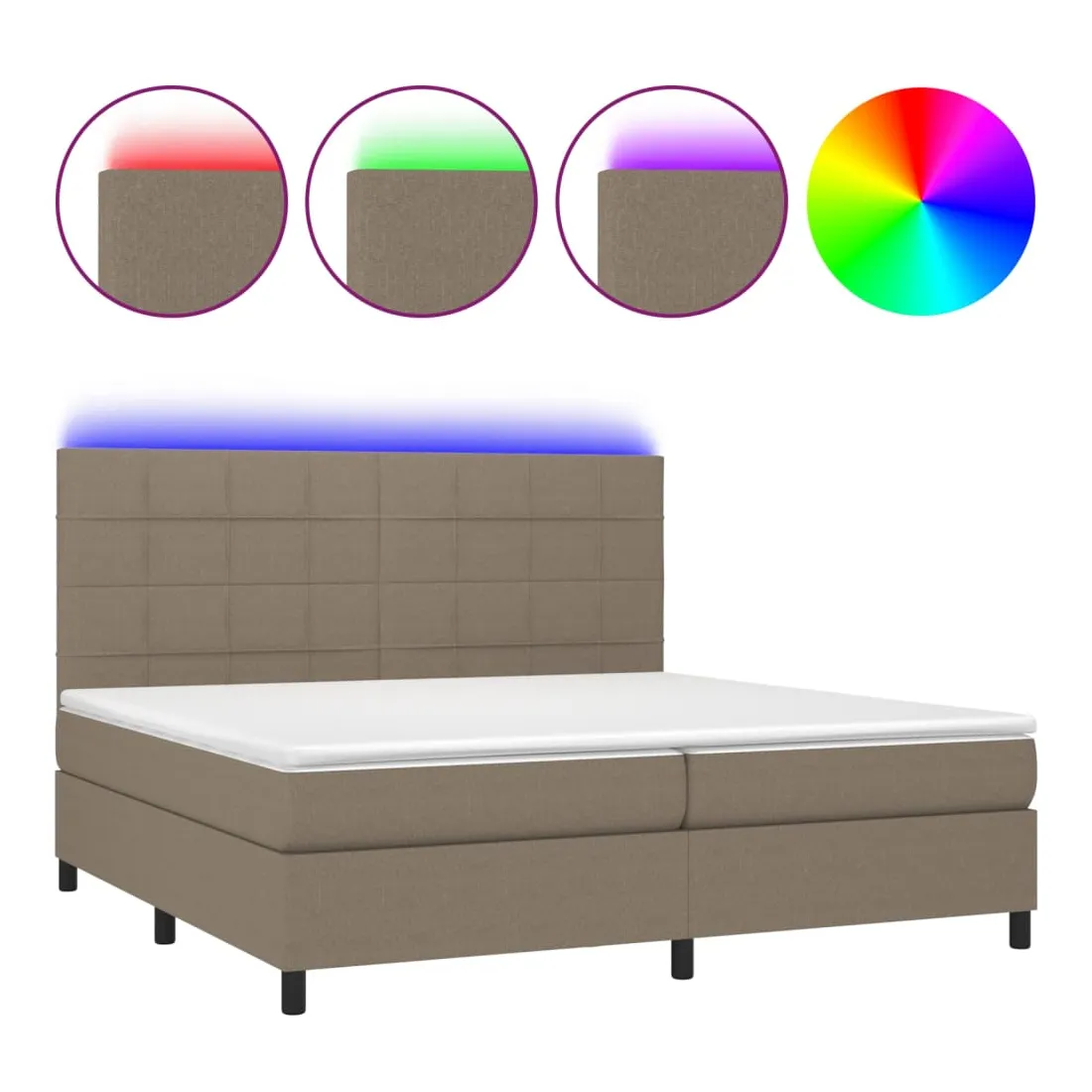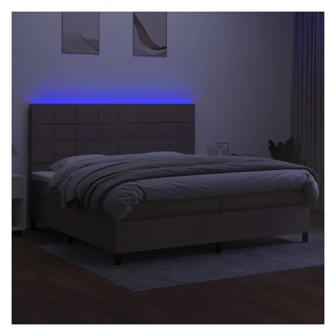 Utilisez ce sommier tapissier avec matelas et LED pour profiter d'un sommeil réparateur ! C'est le point central de votre chambre à coucher. Tissu durable : le tissu présente un aspect simple et épuré, et il est respirant et durable.Tête de lit pratique : la tête de lit est réglable en hauteur selon vos préférences. La tête de lit vous offre un excellent soutien du dos lorsque vous êtes assis dans votre lit pour lire ou regarder la télévision.Bande LED colorée : apportez de l'éclairage dans l'obscurité avec des lumières LED colorées !Matelas à ressorts ensachés : le ressort ensaché individuel intégré est connu pour sa très haute qualité tout en assurant un haut niveau de durabilité et d'adaptabilité. Il peut absorber efficacement le bruit et les chocs causés par les sauts et les rotations.Protège-matelas doux pour la peau : le protège-matelas est recouvert d'un tissu résistant et doux pour la peau, ce qui le rend souple et confortable. Remarque :Pour des raisons d'hygiène, le matelas ne peut pas être retourné si l'emballage est retiré ou ouvert.Seule la partie avec un symbole de ciseaux peut être coupée et seule la partie avec l'USB continuera à fonctionner comme avant.Chaque produit est livré avec un manuel de montage dans la boîte pour un montage facile.Ce produit est doté d'un connecteur USB, mais la source d'alimentation certifiée de USB 5V n'est pas incluse.