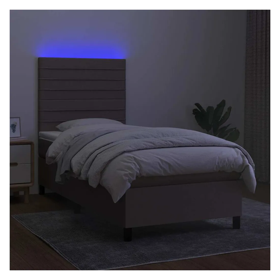 Utilisez ce sommier tapissier avec matelas et LED pour profiter d'un sommeil réparateur ! C'est le point central de votre chambre à coucher. Tissu durable : le tissu présente un aspect simple et épuré, et il est respirant et durable.Tête de lit pratique : la tête de lit est réglable en hauteur selon vos préférences. La tête de lit vous offre un excellent soutien du dos lorsque vous êtes assis dans votre lit pour lire ou regarder la télévision.Bande LED colorée : apportez de l'éclairage dans l'obscurité avec des lumières LED colorées !Matelas à ressorts ensachés : le ressort ensaché individuel intégré est connu pour sa très haute qualité tout en assurant un haut niveau de durabilité et d'adaptabilité. Il peut absorber efficacement le bruit et les chocs causés par les sauts et les rotations.Protège-matelas doux pour la peau : le protège-matelas est recouvert d'un tissu résistant et doux pour la peau, ce qui le rend souple et confortable. Remarque :Pour des raisons d'hygiène, le matelas ne peut pas être retourné si l'emballage est retiré ou ouvert.Seule la partie avec un symbole de ciseaux peut être coupée et seule la partie avec l'USB continuera à fonctionner comme avant.Chaque produit est livré avec un manuel de montage dans la boîte pour un montage facile.Ce produit est doté d'un connecteur USB, mais la source d'alimentation certifiée de USB 5V n'est pas incluse.