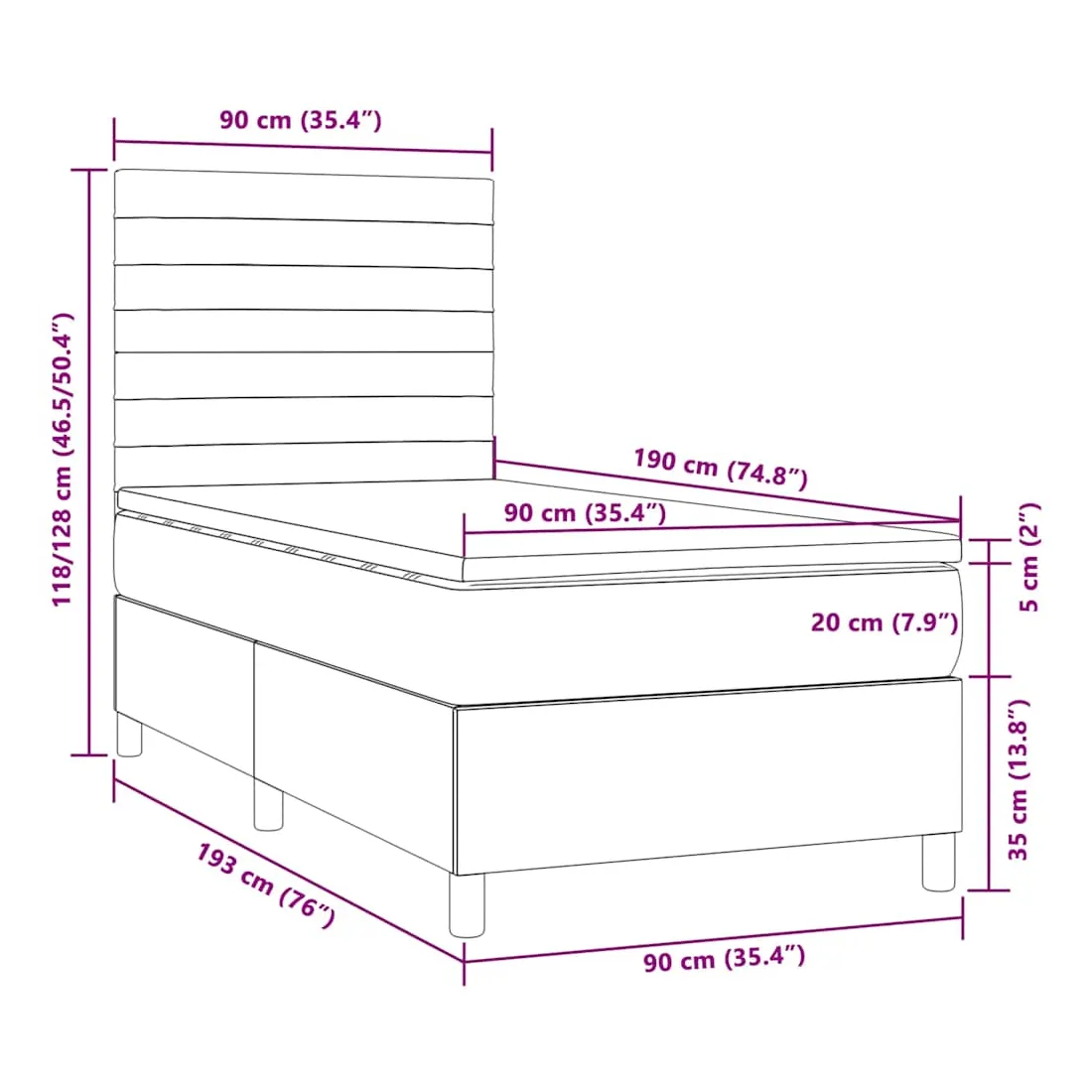 90 x 190 cm