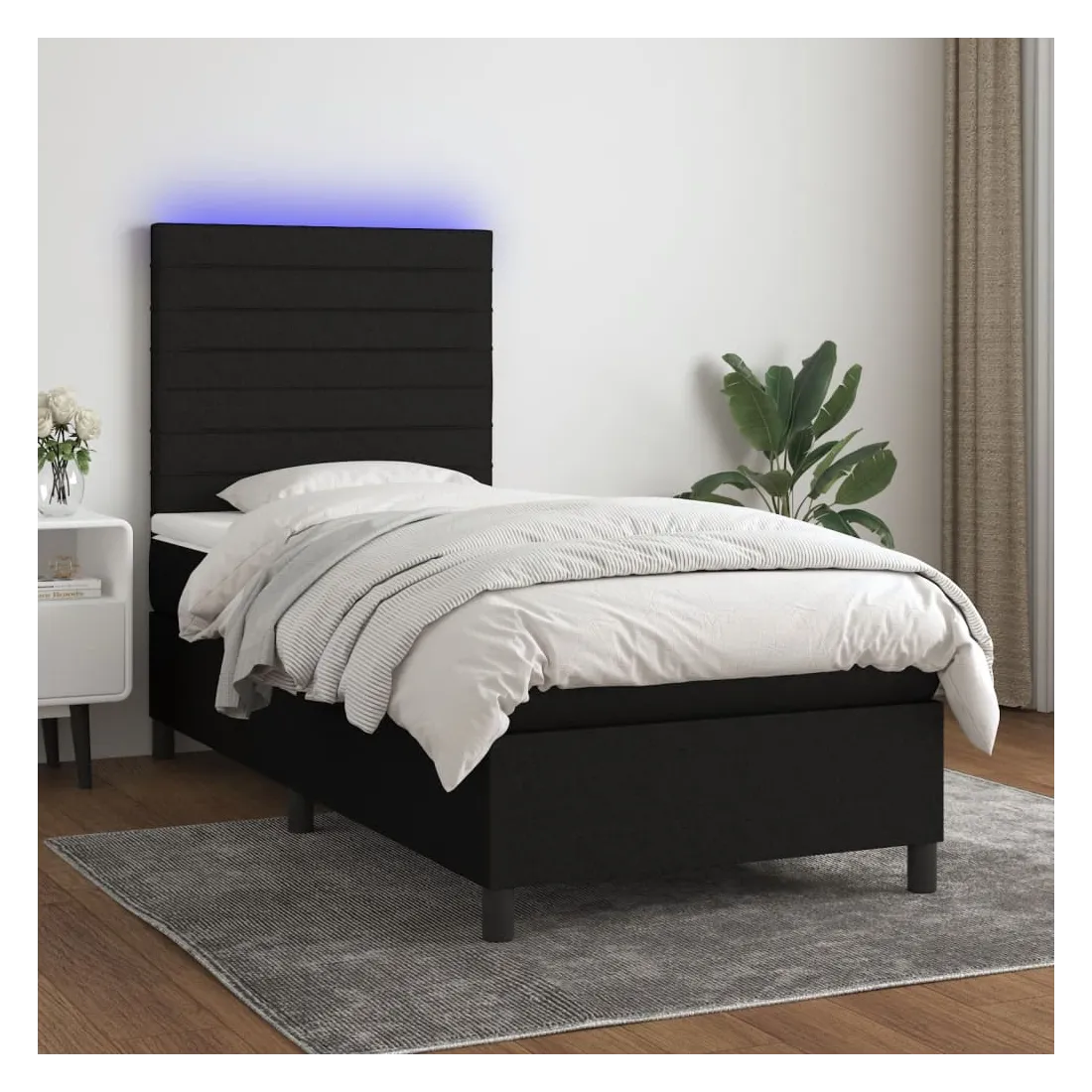 Utilisez ce sommier tapissier avec matelas et LED pour profiter d'un sommeil réparateur ! C'est le point central de votre chambre à coucher. Tissu durable : le tissu présente un aspect simple et épuré, et il est respirant et durable.Tête de lit pratique : la tête de lit est réglable en hauteur selon vos préférences. La tête de lit vous offre un excellent soutien du dos lorsque vous êtes assis dans votre lit pour lire ou regarder la télévision.Bande LED colorée : apportez de l'éclairage dans l'obscurité avec des lumières LED colorées !Matelas à ressorts ensachés : le ressort ensaché individuel intégré est connu pour sa très haute qualité tout en assurant un haut niveau de durabilité et d'adaptabilité. Il peut absorber efficacement le bruit et les chocs causés par les sauts et les rotations.Protège-matelas doux pour la peau : le protège-matelas est recouvert d'un tissu résistant et doux pour la peau, ce qui le rend souple et confortable. Remarque :Pour des raisons d'hygiène, le matelas ne peut pas être retourné si l'emballage est retiré ou ouvert.Seule la partie avec un symbole de ciseaux peut être coupée et seule la partie avec l'USB continuera à fonctionner comme avant.Chaque produit est livré avec un manuel de montage dans la boîte pour un montage facile.Ce produit est doté d'un connecteur USB, mais la source d'alimentation certifiée de USB 5V n'est pas incluse.