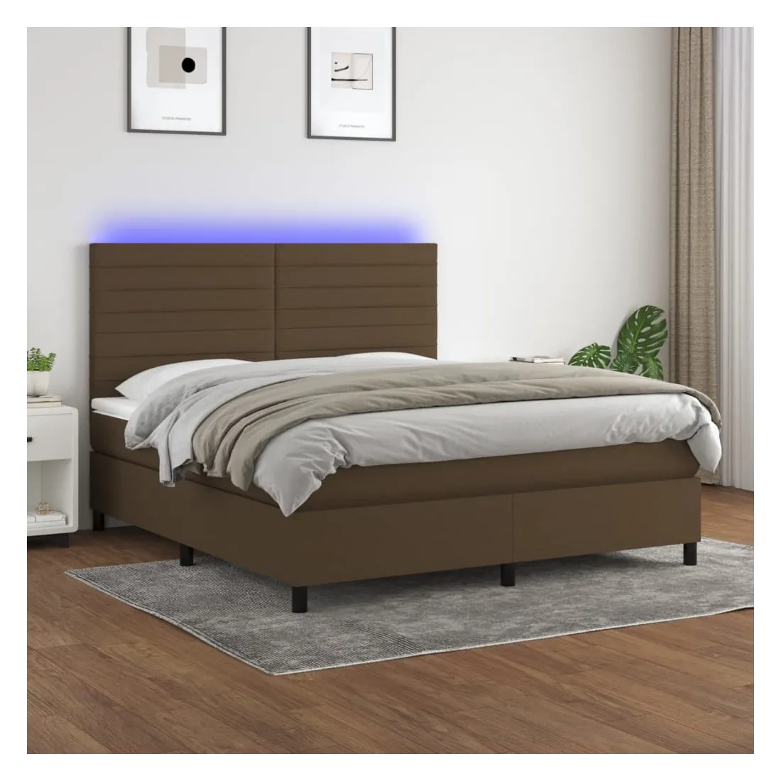 Utilisez ce sommier tapissier avec matelas et LED pour profiter d'un sommeil réparateur ! C'est le point central de votre chambre à coucher. Tissu durable : le tissu présente un aspect simple et épuré, et il est respirant et durable.Tête de lit pratique : la tête de lit est réglable en hauteur selon vos préférences. La tête de lit vous offre un excellent soutien du dos lorsque vous êtes assis dans votre lit pour lire ou regarder la télévision.Bande LED colorée : apportez de l'éclairage dans l'obscurité avec des lumières LED colorées !Matelas à ressorts ensachés : le ressort ensaché individuel intégré est connu pour sa très haute qualité tout en assurant un haut niveau de durabilité et d'adaptabilité. Il peut absorber efficacement le bruit et les chocs causés par les sauts et les rotations.Protège-matelas doux pour la peau : le protège-matelas est recouvert d'un tissu résistant et doux pour la peau, ce qui le rend souple et confortable. Remarque :Pour des raisons d'hygiène, le matelas ne peut pas être retourné si l'emballage est retiré ou ouvert.Seule la partie avec un symbole de ciseaux peut être coupée et seule la partie avec l'USB continuera à fonctionner comme avant.Chaque produit est livré avec un manuel de montage dans la boîte pour un montage facile.Ce produit est doté d'un connecteur USB, mais la source d'alimentation certifiée de USB 5V n'est pas incluse.