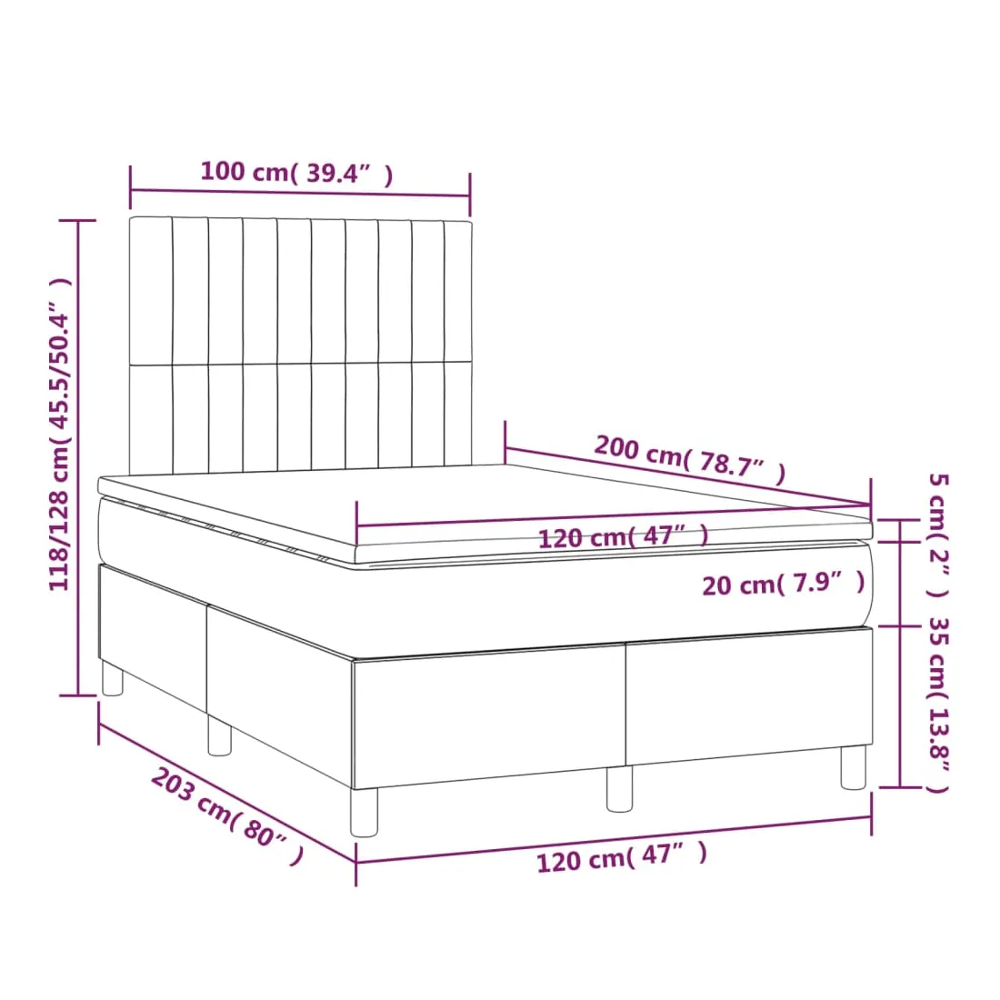 • Dimensions : 120 x 200 x 20 cm (l x L x H)