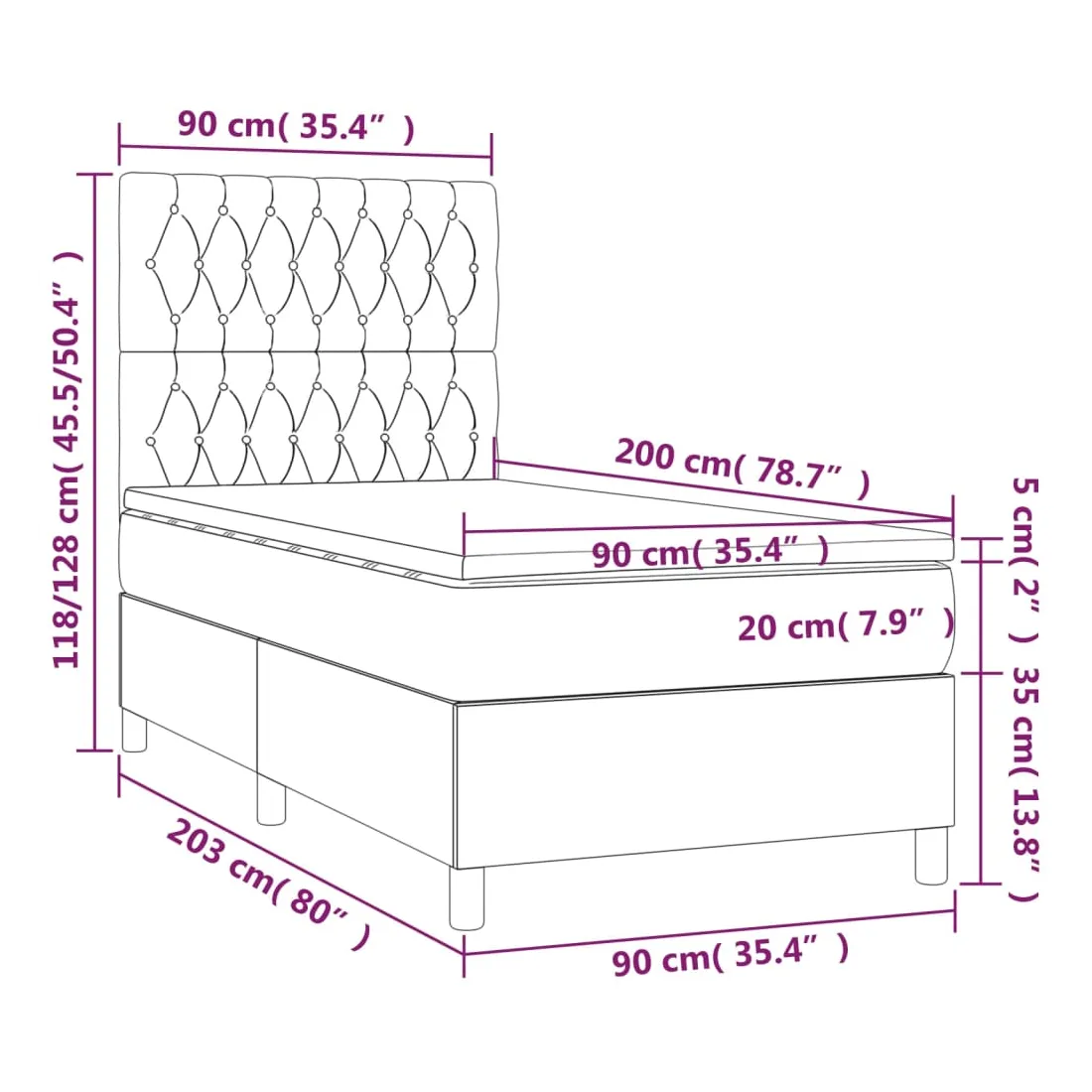 • Dimensions totales : 203 x 90 x 118/128 cm (L x l x H)