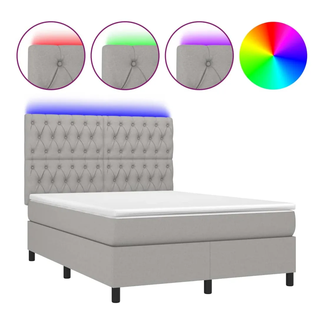 Sommier à lattes de lit et matelas et LED Gris clair 140x200 cm