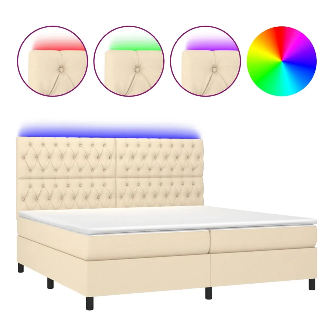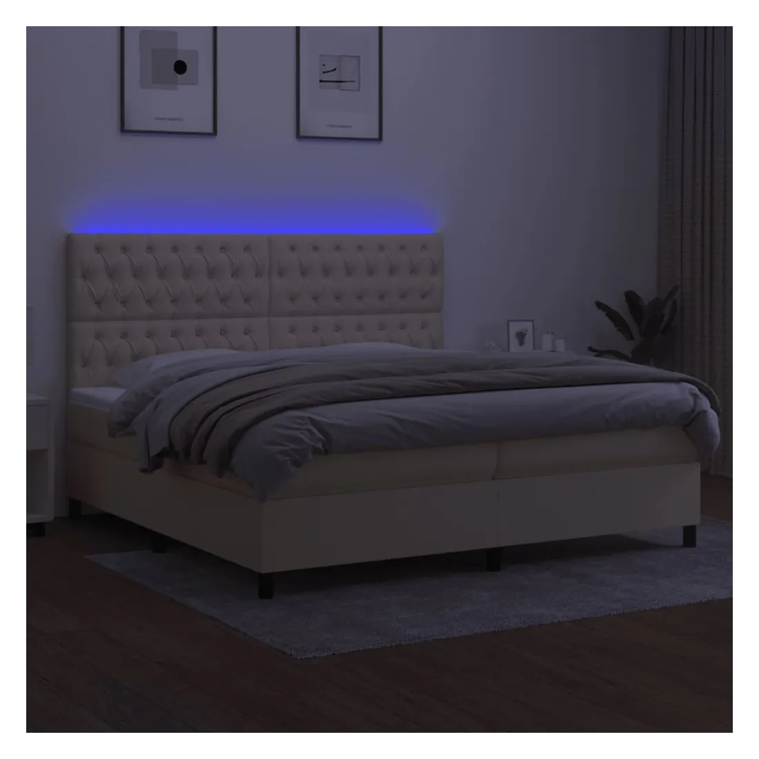 Utilisez ce sommier tapissier avec matelas et LED pour profiter d'un sommeil réparateur ! C'est le point central de votre chambre à coucher. Tissu durable : le tissu présente un aspect simple et épuré, et il est respirant et durable.Tête de lit pratique : la tête de lit est réglable en hauteur selon vos préférences. La tête de lit vous offre un excellent soutien du dos lorsque vous êtes assis dans votre lit pour lire ou regarder la télévision.Bande LED colorée : apportez de l'éclairage dans l'obscurité avec des lumières LED colorées !Matelas à ressorts ensachés : le ressort ensaché individuel intégré est connu pour sa très haute qualité tout en assurant un haut niveau de durabilité et d'adaptabilité. Il peut absorber efficacement le bruit et les chocs causés par les sauts et les rotations.Protège-matelas doux pour la peau : le protège-matelas est recouvert d'un tissu résistant et doux pour la peau, ce qui le rend souple et confortable. Remarque :Pour des raisons d'hygiène, le matelas ne peut pas être retourné si l'emballage est retiré ou ouvert.Seule la partie avec un symbole de ciseaux peut être coupée et seule la partie avec l'USB continuera à fonctionner comme avant.Chaque produit est livré avec un manuel de montage dans la boîte pour un montage facile.Ce produit est doté d'un connecteur USB, mais la source d'alimentation certifiée de USB 5V n'est pas incluse.