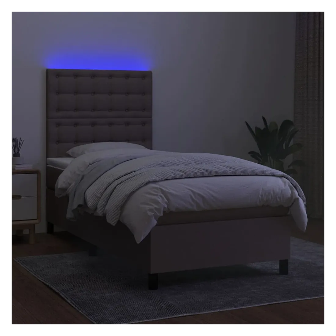 Utilisez ce sommier tapissier avec matelas et LED pour profiter d'un sommeil réparateur ! C'est le point central de votre chambre à coucher. Tissu durable : le tissu présente un aspect simple et épuré, et il est respirant et durable.Tête de lit pratique : la tête de lit est réglable en hauteur selon vos préférences. La tête de lit vous offre un excellent soutien du dos lorsque vous êtes assis dans votre lit pour lire ou regarder la télévision.Bande LED colorée : apportez de l'éclairage dans l'obscurité avec des lumières LED colorées !Matelas à ressorts ensachés : le ressort ensaché individuel intégré est connu pour sa très haute qualité tout en assurant un haut niveau de durabilité et d'adaptabilité. Il peut absorber efficacement le bruit et les chocs causés par les sauts et les rotations.Protège-matelas doux pour la peau : le protège-matelas est recouvert d'un tissu résistant et doux pour la peau, ce qui le rend souple et confortable. Remarque :Pour des raisons d'hygiène, le matelas ne peut pas être retourné si l'emballage est retiré ou ouvert.Seule la partie avec un symbole de ciseaux peut être coupée et seule la partie avec l'USB continuera à fonctionner comme avant.Chaque produit est livré avec un manuel de montage dans la boîte pour un montage facile.Ce produit est doté d'un connecteur USB, mais la source d'alimentation certifiée de USB 5V n'est pas incluse.