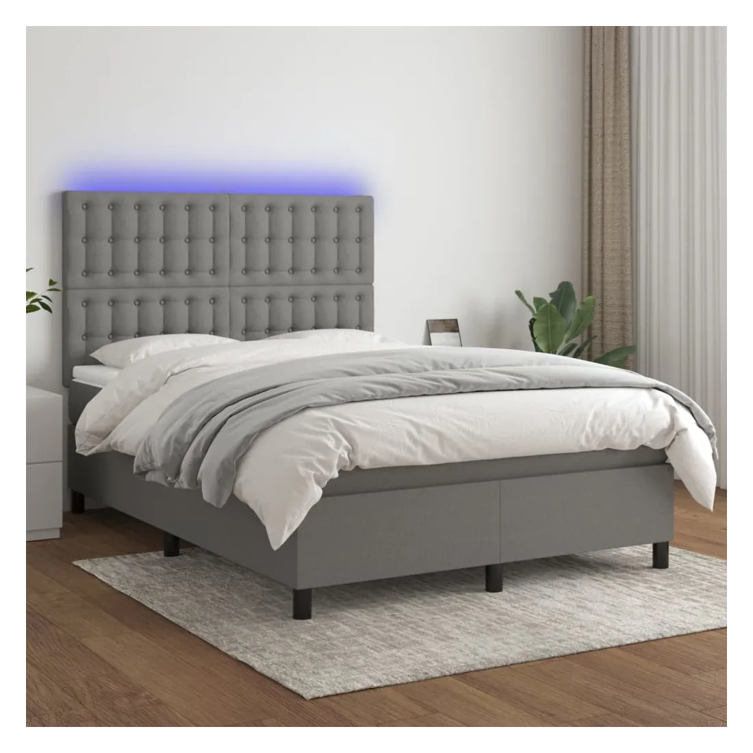 Sommier à lattes de lit et matelas et LED Gris foncé 140x200 cm