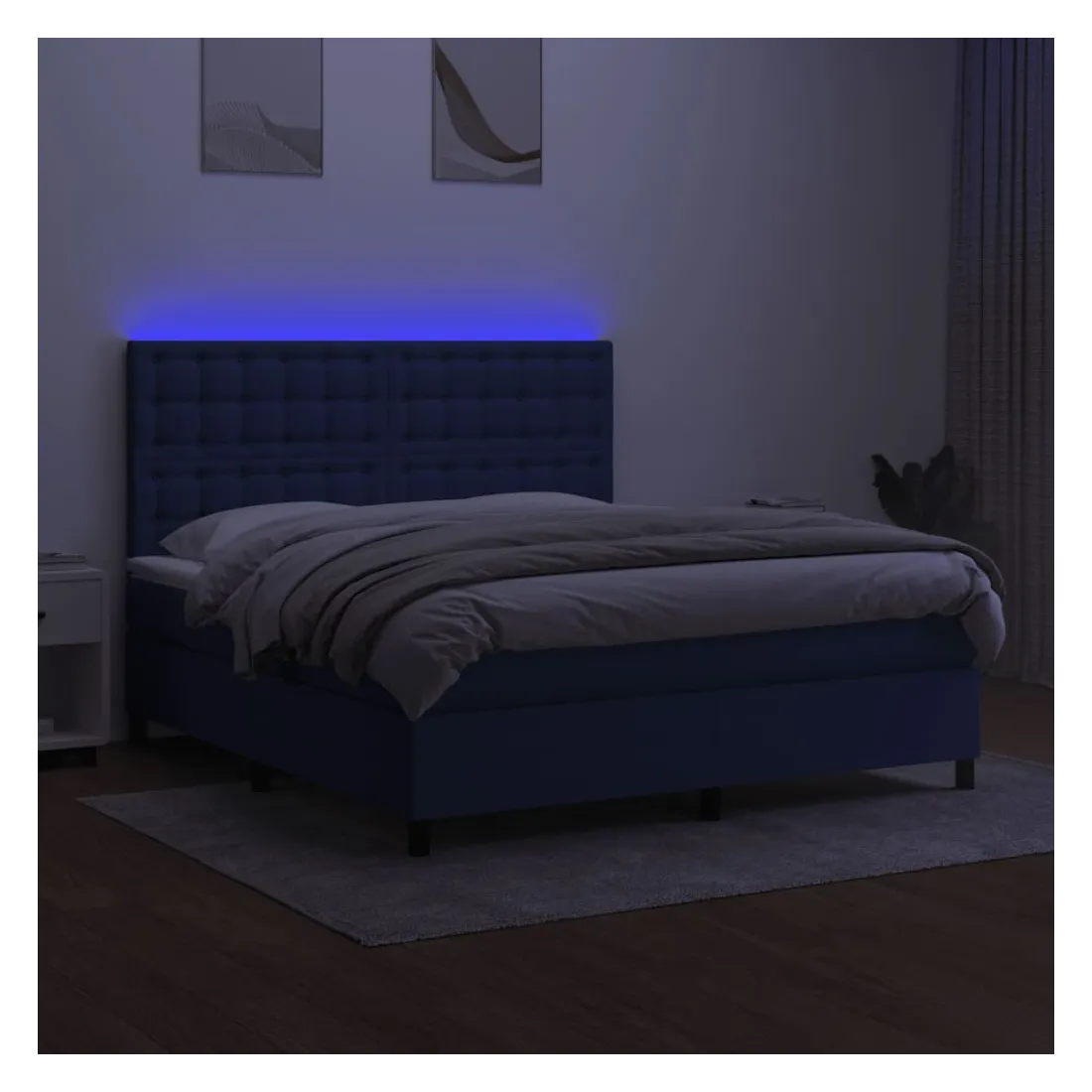 Sommier à lattes de lit et matelas et LED Bleu 160x200 cm Tissu