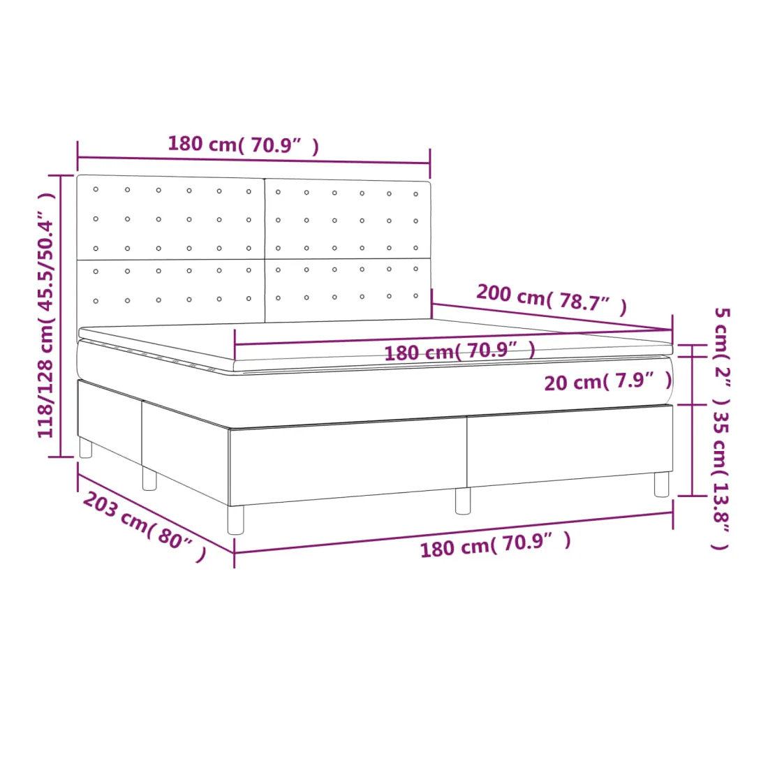 Sommier à lattes de lit et matelas et LED Gris foncé 180x200 cm