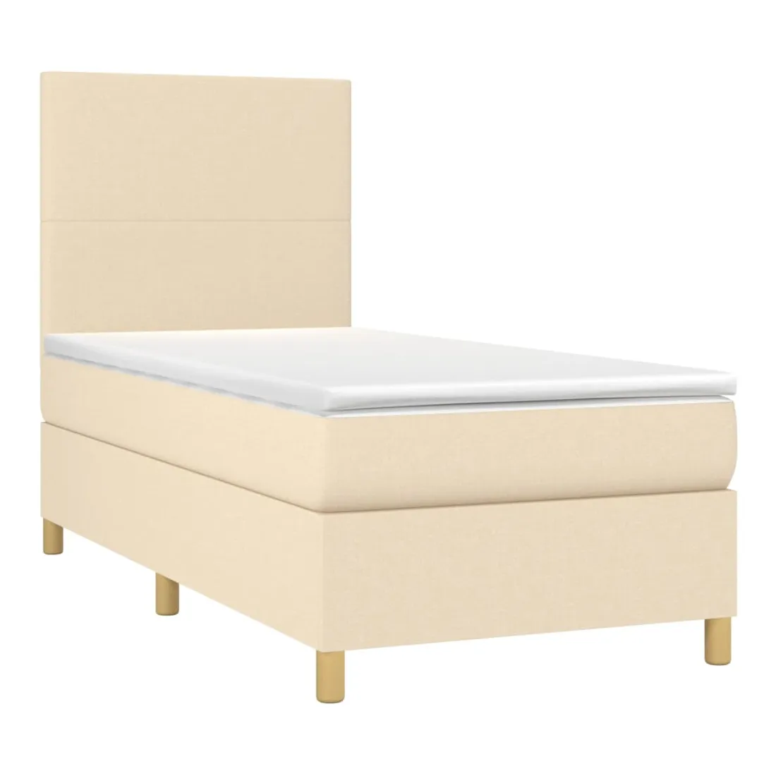 Sommier à lattes de lit et matelas et LED Crème 100x200cm Tissu