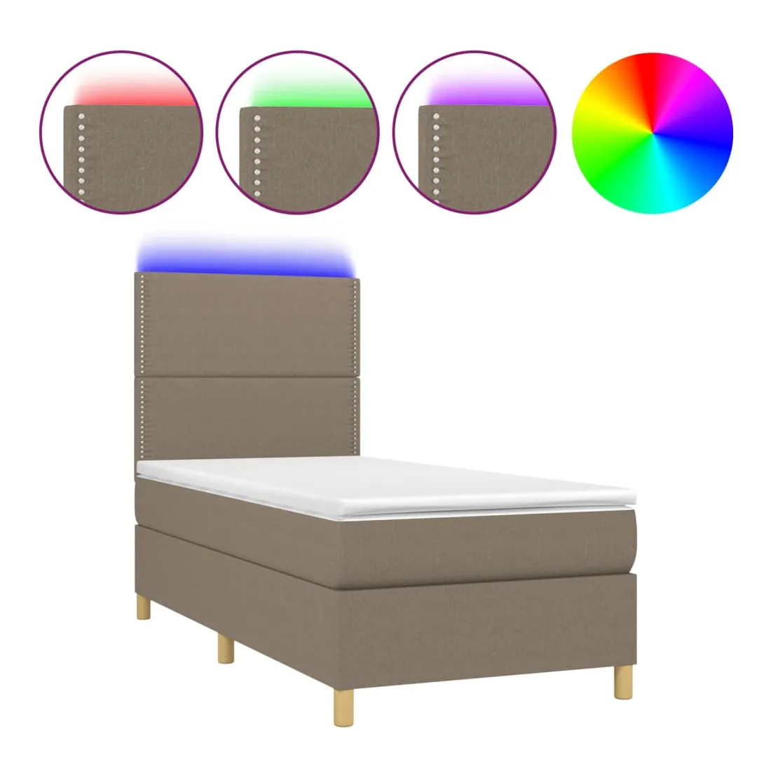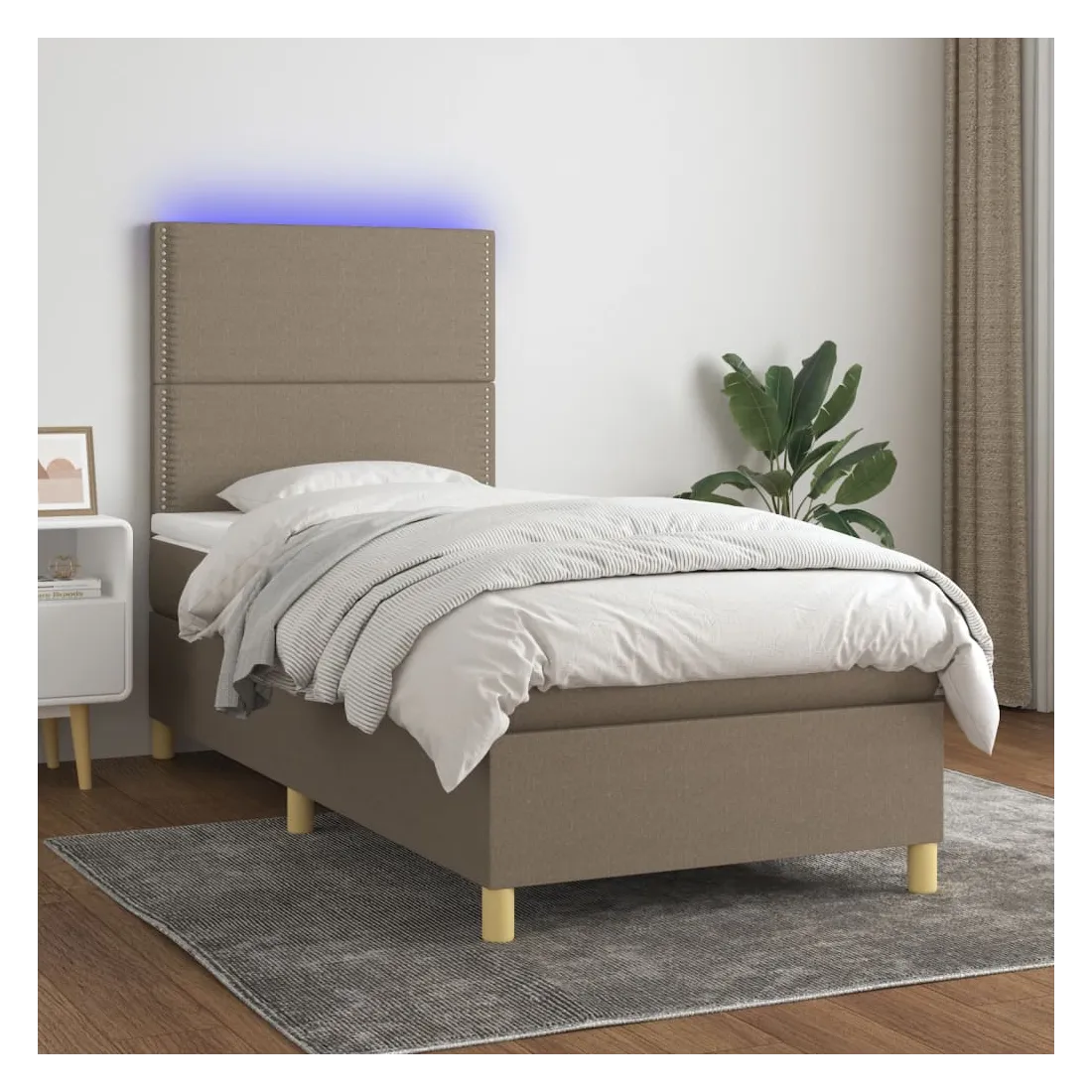 Utilisez ce sommier tapissier avec matelas et LED pour profiter d'un sommeil réparateur ! C'est le point central de votre chambre à coucher. Tissu durable : le tissu présente un aspect simple et épuré, et il est respirant et durable.Tête de lit pratique : la tête de lit est réglable en hauteur selon vos préférences. La tête de lit vous offre un excellent soutien du dos lorsque vous êtes assis dans votre lit pour lire ou regarder la télévision.Bande LED colorée : apportez de l'éclairage dans l'obscurité avec des lumières LED colorées !Matelas à ressorts ensachés : le ressort ensaché individuel intégré est connu pour sa très haute qualité tout en assurant un haut niveau de durabilité et d'adaptabilité. Il peut absorber efficacement le bruit et les chocs causés par les sauts et les rotations.Protège-matelas doux pour la peau : le protège-matelas est recouvert d'un tissu résistant et doux pour la peau, ce qui le rend souple et confortable. Remarque :Pour des raisons d'hygiène, le matelas ne peut pas être retourné si l'emballage est retiré ou ouvert.Seule la partie avec un symbole de ciseaux peut être coupée et seule la partie avec l'USB continuera à fonctionner comme avant.Chaque produit est livré avec un manuel de montage dans la boîte pour un montage facile.Ce produit est doté d'un connecteur USB, mais la source d'alimentation certifiée de USB 5V n'est pas incluse.