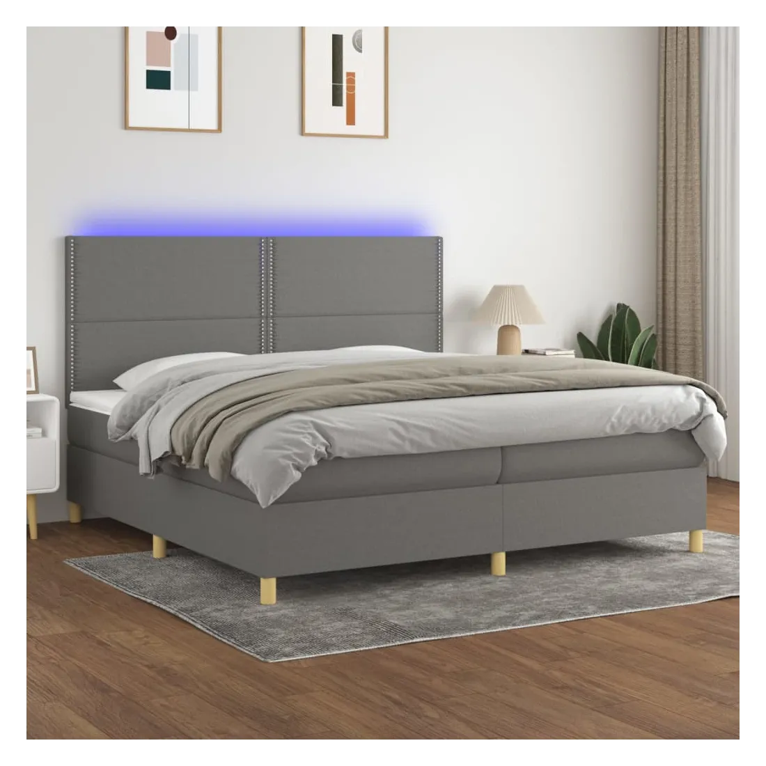 Utilisez ce sommier tapissier avec matelas et LED pour profiter d'un sommeil réparateur ! C'est le point central de votre chambre à coucher. Tissu durable : le tissu présente un aspect simple et épuré, et il est respirant et durable. Tête de lit pratique : la tête de lit est réglable en hauteur selon vos préférences. La tête de lit vous offre un excellent soutien du dos lorsque vous êtes assis dans votre lit pour lire ou regarder la télévision. Bande LED colorée : apportez de l'éclairage dans l'obscurité avec des lumières LED colorées ! Matelas à ressorts ensachés : le ressort ensaché individuel intégré est connu pour sa très haute qualité tout en assurant un haut niveau de durabilité et d'adaptabilité. Il peut absorber efficacement le bruit et les chocs causés par les sauts et les rot