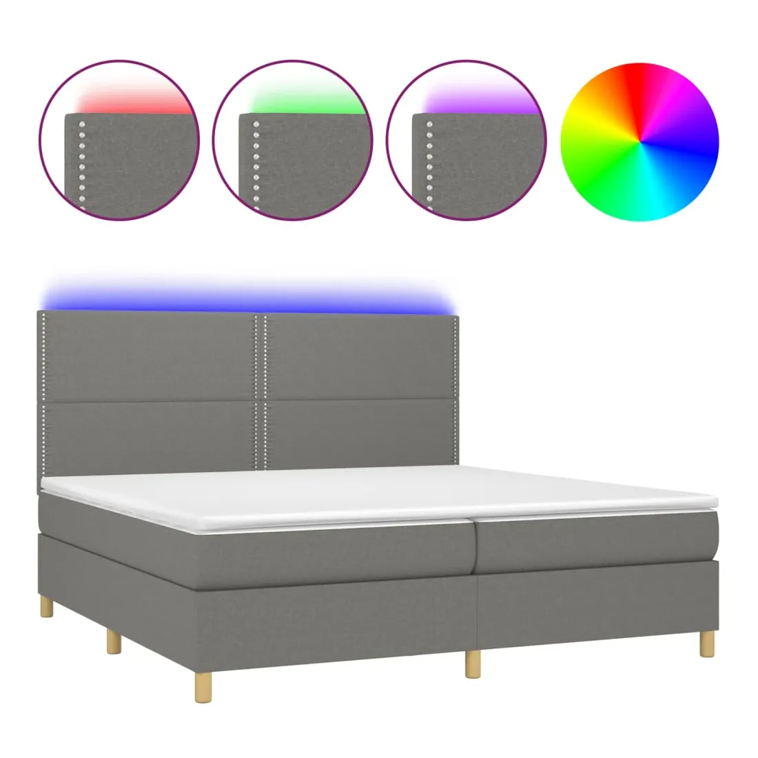 Sommier à lattes de lit et matelas et LED Gris foncé 200x200 cm