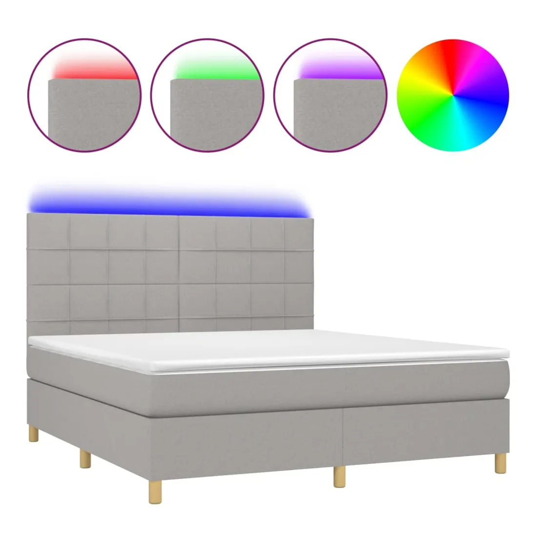 Utilisez ce sommier tapissier avec matelas et LED pour profiter d'un sommeil réparateur ! C'est le point central de votre chambre à coucher. Tissu durable : le tissu présente un aspect simple et épuré, et il est respirant et durable.Tête de lit pratique : la tête de lit est réglable en hauteur selon vos préférences. La tête de lit vous offre un excellent soutien du dos lorsque vous êtes assis dans votre lit pour lire ou regarder la télévision.Bande LED colorée : apportez de l'éclairage dans l'obscurité avec des lumières LED colorées !Matelas à ressorts ensachés : le ressort ensaché individuel intégré est connu pour sa très haute qualité tout en assurant un haut niveau de durabilité et d'adaptabilité. Il peut absorber efficacement le bruit et les chocs causés par les sauts et les rotations.Protège-matelas doux pour la peau : le protège-matelas est recouvert d'un tissu résistant et doux pour la peau, ce qui le rend souple et confortable. Remarque :Pour des raisons d'hygiène, le matelas ne peut pas être retourné si l'emballage est retiré ou ouvert.Seule la partie avec un symbole de ciseaux peut être coupée et seule la partie avec l'USB continuera à fonctionner comme avant.Chaque produit est livré avec un manuel de montage dans la boîte pour un montage facile.Ce produit est doté d'un connecteur USB, mais la source d'alimentation certifiée de USB 5V n'est pas incluse.