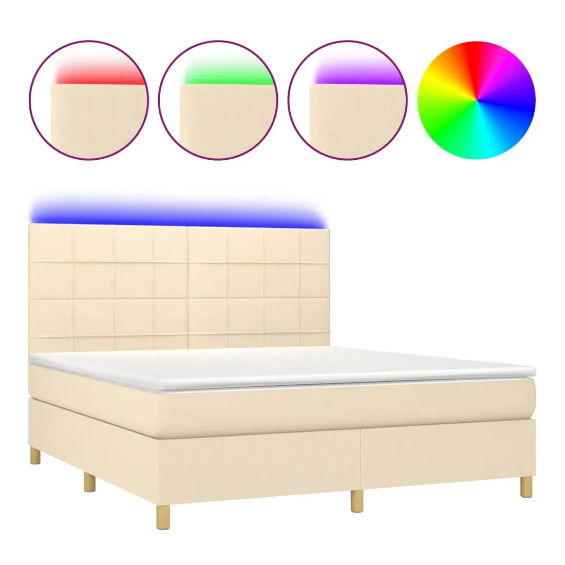 Utilisez ce sommier tapissier avec matelas et LED pour profiter d'un sommeil réparateur ! C'est le point central de votre chambre à coucher. Tissu durable : le tissu présente un aspect simple et épuré, et il est respirant et durable.Tête de lit pratique : la tête de lit est réglable en hauteur selon vos préférences. La tête de lit vous offre un excellent soutien du dos lorsque vous êtes assis dans votre lit pour lire ou regarder la télévision.Bande LED colorée : apportez de l'éclairage dans l'obscurité avec des lumières LED colorées !Matelas à ressorts ensachés : le ressort ensaché individuel intégré est connu pour sa très haute qualité tout en assurant un haut niveau de durabilité et d'adaptabilité. Il peut absorber efficacement le bruit et les chocs causés par les sauts et les rotations.Protège-matelas doux pour la peau : le protège-matelas est recouvert d'un tissu résistant et doux pour la peau, ce qui le rend souple et confortable. Remarque :Pour des raisons d'hygiène, le matelas ne peut pas être retourné si l'emballage est retiré ou ouvert.Seule la partie avec un symbole de ciseaux peut être coupée et seule la partie avec l'USB continuera à fonctionner comme avant.Chaque produit est livré avec un manuel de montage dans la boîte pour un montage facile.Ce produit est doté d'un connecteur USB, mais la source d'alimentation certifiée de USB 5V n'est pas incluse.