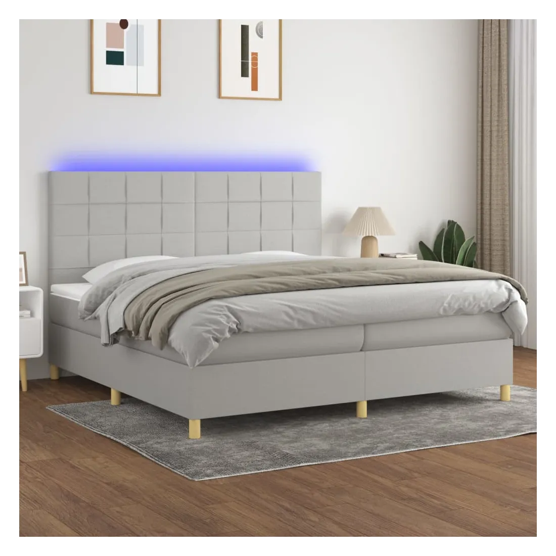 Utilisez ce sommier tapissier avec matelas et LED pour profiter d'un sommeil réparateur ! C'est le point central de votre chambre à coucher. Tissu durable : le tissu présente un aspect simple et épuré, et il est respirant et durable. Tête de lit pratique : la tête de lit est réglable en hauteur selon vos préférences. La tête de lit vous offre un excellent soutien du dos lorsque vous êtes assis dans votre lit pour lire ou regarder la télévision. Bande LED colorée : apportez de l'éclairage dans l'obscurité avec des lumières LED colorées ! Matelas à ressorts ensachés : le ressort ensaché individuel intégré est connu pour sa très haute qualité tout en assurant un haut niveau de durabilité et d'adaptabilité. Il peut absorber efficacement le bruit et les chocs causés par les sauts et les rot