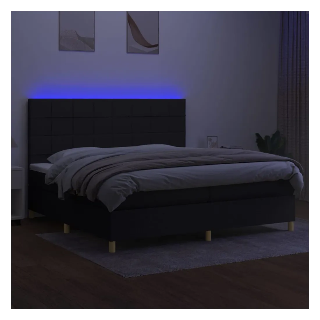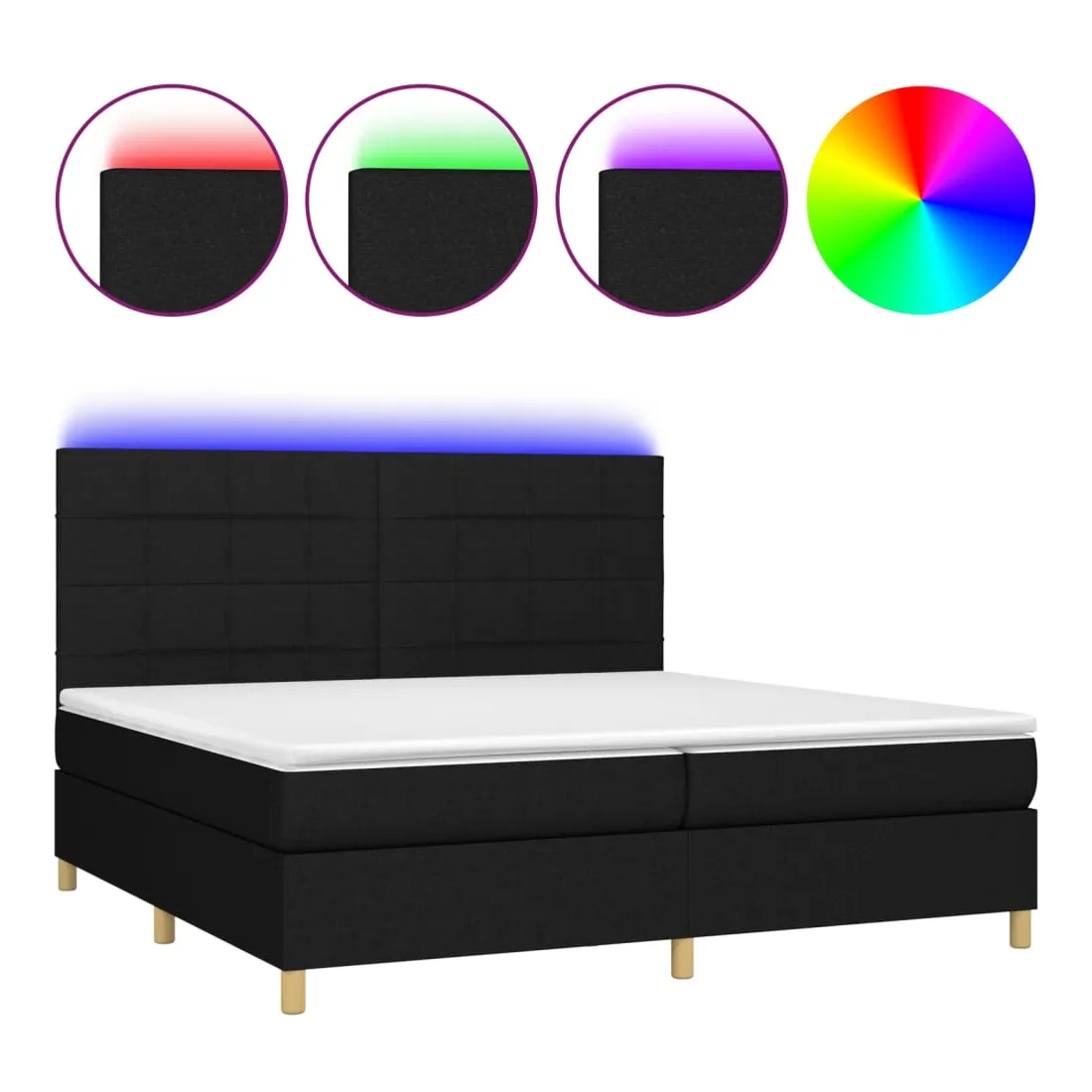 Utilisez ce sommier tapissier avec matelas et LED pour profiter d'un sommeil réparateur ! C'est le point central de votre chambre à coucher. Tissu durable : le tissu présente un aspect simple et épuré, et il est respirant et durable.Tête de lit pratique : la tête de lit est réglable en hauteur selon vos préférences. La tête de lit vous offre un excellent soutien du dos lorsque vous êtes assis dans votre lit pour lire ou regarder la télévision.Bande LED colorée : apportez de l'éclairage dans l'obscurité avec des lumières LED colorées !Matelas à ressorts ensachés : le ressort ensaché individuel intégré est connu pour sa très haute qualité tout en assurant un haut niveau de durabilité et d'adaptabilité. Il peut absorber efficacement le bruit et les chocs causés par les sauts et les rotations.Protège-matelas doux pour la peau : le protège-matelas est recouvert d'un tissu résistant et doux pour la peau, ce qui le rend souple et confortable. Remarque :Pour des raisons d'hygiène, le matelas ne peut pas être retourné si l'emballage est retiré ou ouvert.Seule la partie avec un symbole de ciseaux peut être coupée et seule la partie avec l'USB continuera à fonctionner comme avant.Chaque produit est livré avec un manuel de montage dans la boîte pour un montage facile.Ce produit est doté d'un connecteur USB, mais la source d'alimentation certifiée de USB 5V n'est pas incluse.