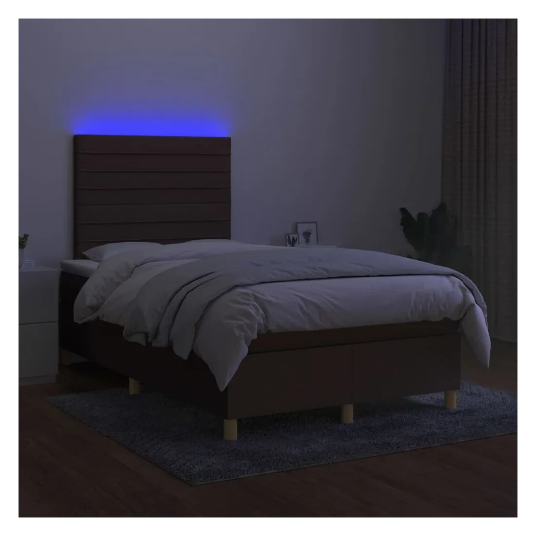 Sommier à lattes de lit matelas et LED Marron foncé 120x200 cm